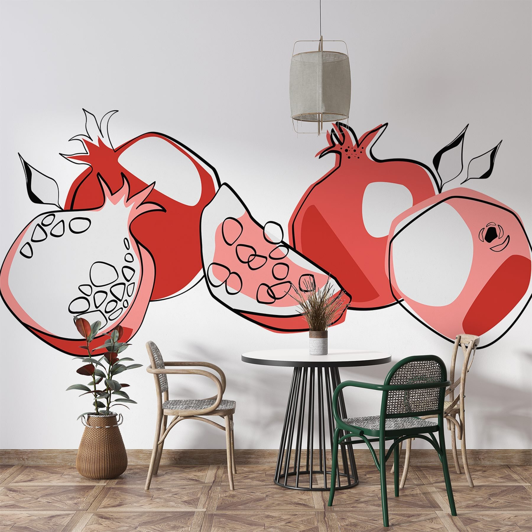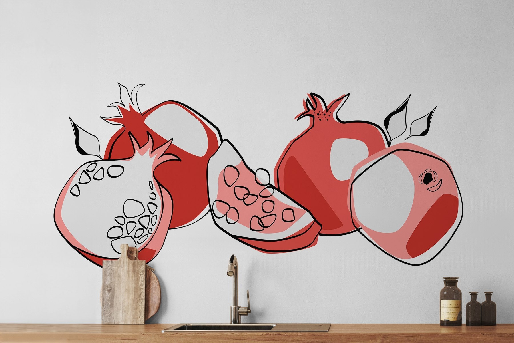 Premeňte každú stenu na živú pastvu pre oči s touto úžasnou nástennou maľbou “Skupina granátových jabĺk”. Nie je to len dekorácia, ale aj podnet na rozhovor. Predstavte si priateľov, ako ju obdivujú a zároveň sa snažia spomenúť si, kedy naposledy jedli granátové jablko – pravdepodobne je to už príliš dávno! Žiarivé červené farby a hravé línie dodávajú kuchyni sviežu, ovocnú atmosféru, vďaka ktorej sa môže cítiť ako v slnečnom sade. Predstavte si, že sa každé ráno zobudíte na tento príval farieb; určite to podnieti kreativitu a radosť. Perfektné pre gurmánov alebo pre každého, kto miluje závan prírody v interiéri.