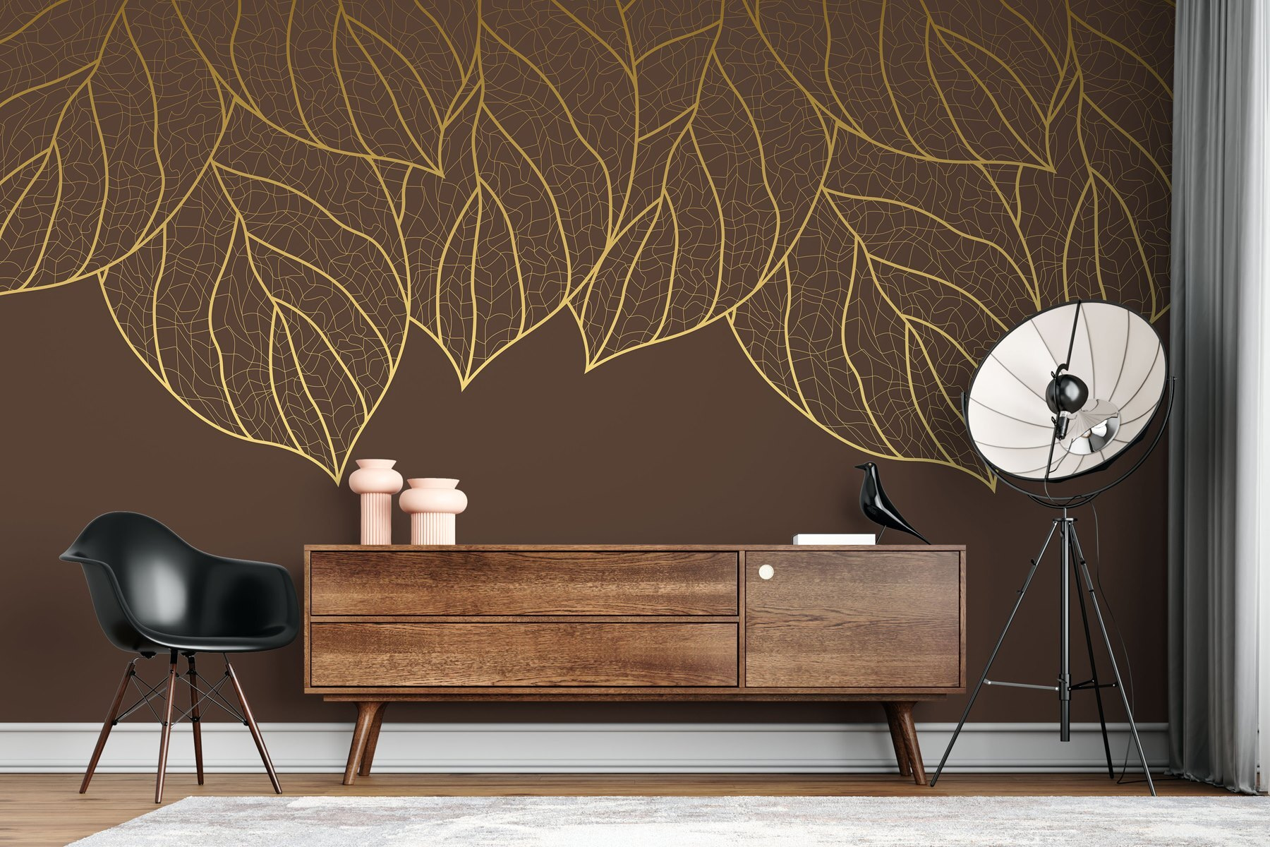 Premena miestnosti pomocou tejto nástennej maľby je ako pozvanie pokojného lesa priamo do vášho domova. Predstavte si, že sa zobudíte na jemnú kaskádu listov na teplom hnedom pozadí – určite lepšie ako prázdna stena, však? Tento dizajn dodáva prírode nádych, ktorý pôsobí útulne a zároveň moderne. Len si predstavte, aké príjemné by bolo popíjať vedľa neho kávu a cítiť sa o niečo uzemnenejšie, keď tieto obrysy listov tancujú v blízkosti vášho ranného svetla. Ideálny do obývacích priestorov alebo spální, je tu na vytvorenie pokojnej atmosféry, ktorá našepkáva pokoj a pohodu. Kto by povedal, že stena môže priniesť takú dobrú energiu?