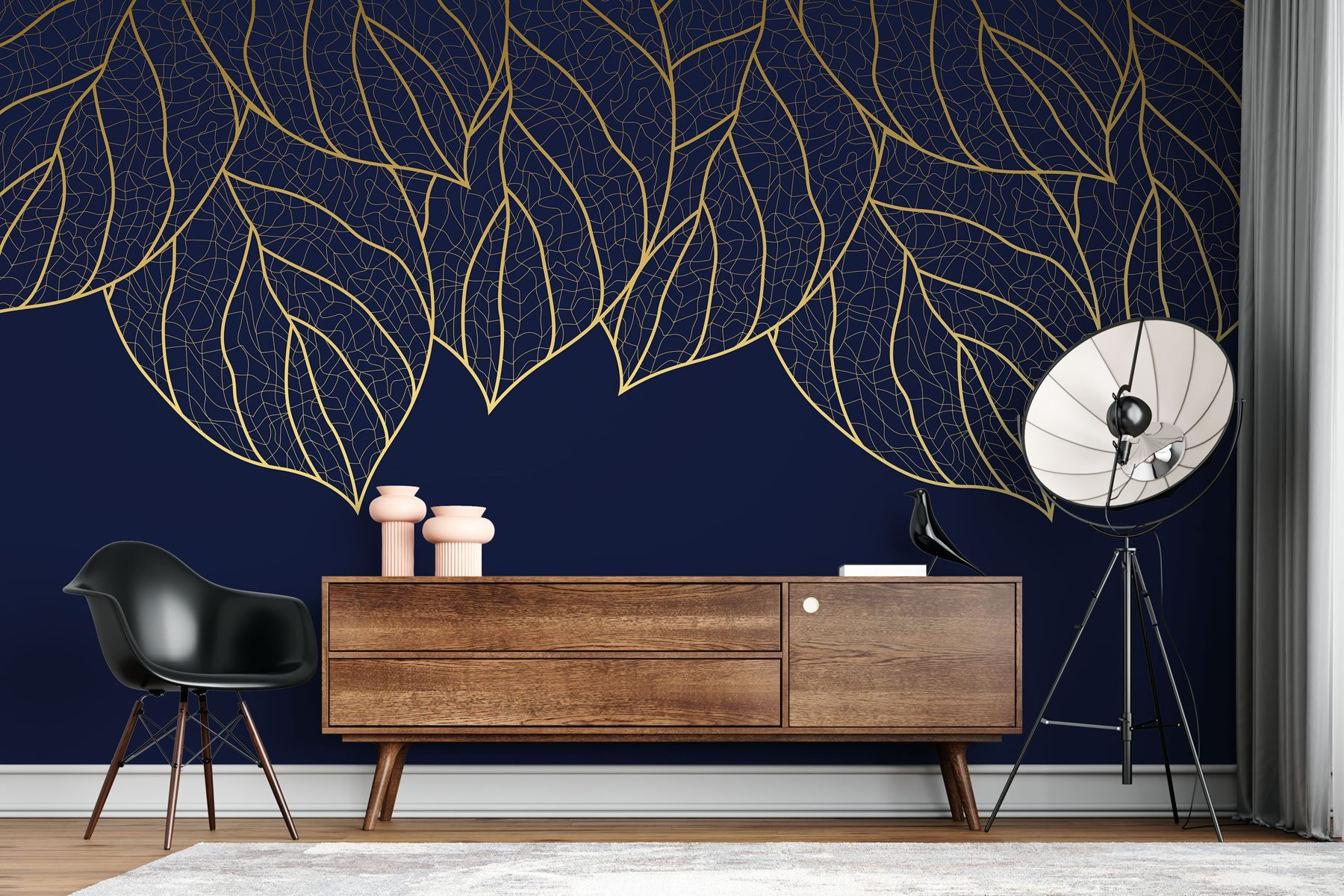 Premeňte akúkoľvek miestnosť na útulné útočisko pomocou tejto nástennej maľby s elegantnými listami na sýtom tmavom pozadí. Je to ako hrejivé objatie od prírody, také, po ktorom sa budete chcieť schúliť do klbka s dobrou knihou a šálkou čaju. Predstavte si to: daždivé popoludnie, mäkké svetlo prenikajúce cez okno a tie zložité vzory listov, ktoré vás obklopujú ako jemné objatie. Kontrast hlbokého pozadia s jemnými listami prináša nádych sofistikovanosti bez toho, aby sa stratila tá uvoľnená atmosféra. Či už v obývacej izbe, alebo v pokojnom čitateľskom kútiku, táto nástenná maľba dodáva kúsok šarmu, ktorý je rovnako osviežujúci ako prechádzka tichým lesom. Kto by nechcel mať v interiéri kúsok prírody?