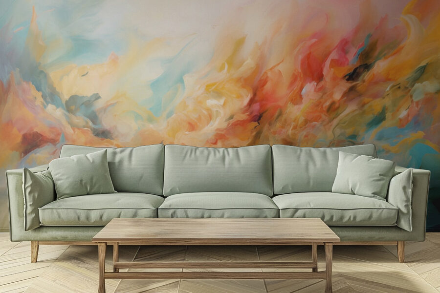 Premeňte akýkoľvek priestor pomocou tejto úžasnej nástennej maľby “Farebná maľba oblaku farby”. Predstavte si, že vstúpite do svojej izby a budete mať pocit, že ste vstúpili do snového abstraktného raja. Táto nádherná spŕška farieb tancuje po stene a nabáda k tvorivosti a pocitu pokoja. Je to ako jemné vírenie akvarelových pocitov, ktoré prináša jemnú, veselú atmosféru, ktorá dokáže rozjasniť aj tie najnudnejšie dni.