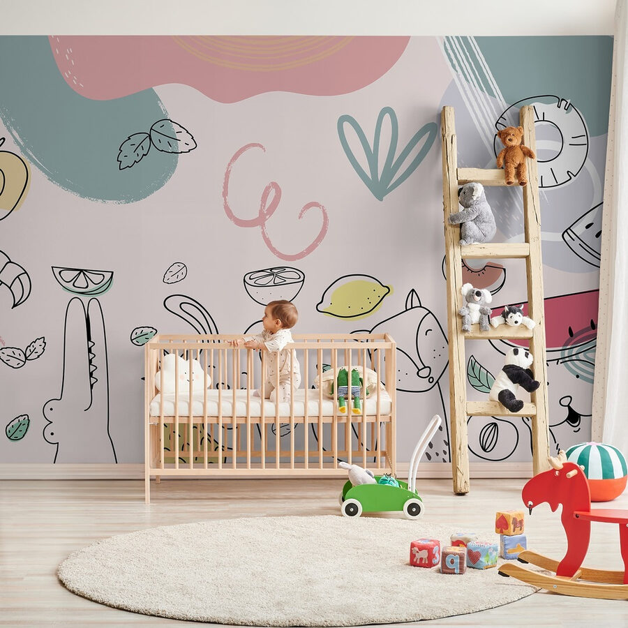 Rozžiarte každú miestnosť touto rozkošnou nástennou maľbou s kreslenými zvieratkami, ktoré šťastne držia svoje obľúbené ovocie. Predstavte si drzého plameniaka, ktorý si pochutnáva na plátku melóna, alebo zajačika, ktorý si pochováva celý ananás – je to ako ovocná párty priamo na vašej stene! Tento rozmarný dizajn prináša hravú atmosféru, ktorá je ideálna do detskej izby alebo útulného zákutia. Predstavte si, že vojdete a okamžite sa budete cítiť ľahšie, akoby ste vstúpili do slnečného dňa na pláži. Je to spŕška zábavy a farieb, ktorá možno práve inšpiruje chuť na ovocný šalát. Kto by nechcel žiť medzi týmito ovocnými priateľmi?