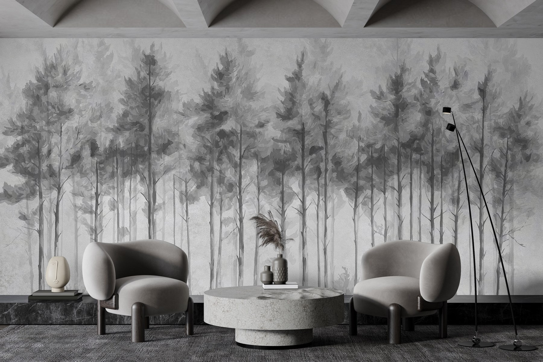 Predstavte si, že pri každom vstupe do izby vstúpite do pokojného lesa. Táto nástenná maľba s názvom “Skupina stromov v lese” zachytáva túto snovú atmosféru a spája jemnú paletu sivej farby s elegantnými siluetami stromov. Je to ako jemný šepot prírody, ktorý pozýva na pokoj a pohodu. Je ideálny do obývačky alebo do čitateľského kútika a možno vás inšpiruje k tomu, aby ste sa schúlili do klbka s dobrou knihou – alebo možno naplánovali turistický výlet, o ktorom ste snívali. Navyše, kto by nechcel nástennú maľbu, vďaka ktorej sa bude cítiť ako na pokojnom úteku? Milovníci prírody sa radujú – tento obraz je pre nich ako stvorený!