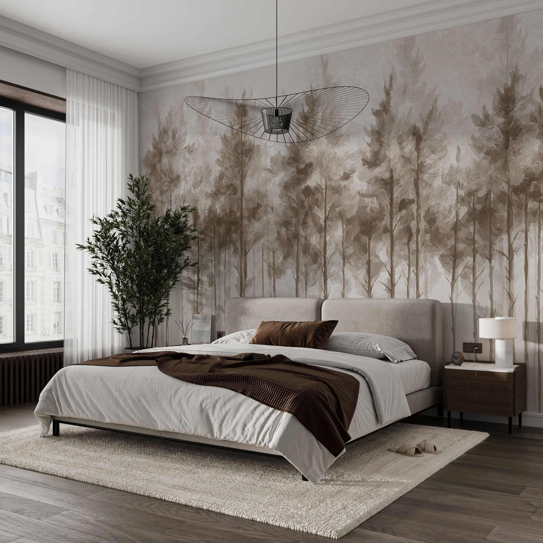 Predstavte si, že vstúpite do svojho útulného priestoru a privíta vás jemná prítomnosť lesa. Táto nástenná maľba “Skupina stromov v lese” premení každú miestnosť na pokojné útočisko. Jemné zemité tóny navodzujú pokoj, akoby ste popíjali čaj v lesnom útočisku. Predstavte si ho za svojím obľúbeným kreslom na čítanie, ktoré pozýva na lenivé popoludnia plné rozprávkových dobrodružstiev. Jemné brezy stoja vysoko a šepkajú tajomstvá krásy prírody. Je to ako mať doma tichý táborák – nepotrebujete marshmallows, len pocit pokoja. Ideálne pre tých, ktorí milujú dotyk prírody bez chrobákov, však?