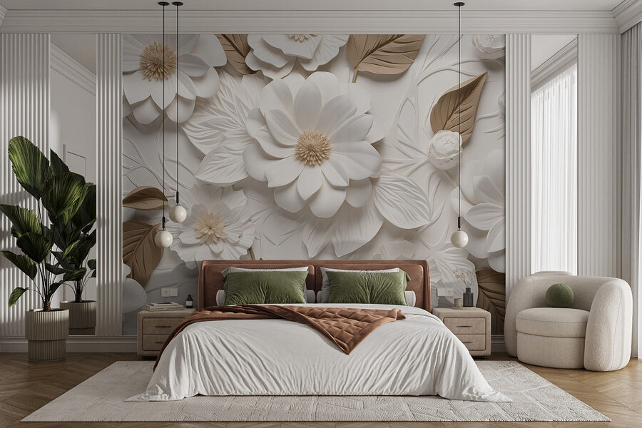 Premeňte akýkoľvek priestor pomocou tejto úžasnej nástennej maľby s bielymi a hnedými kvetmi zabalenými do jemných listov. Predstavte si, že vstúpite do miestnosti, ktorá bude okamžite pôsobiť prívetivejšie, akoby sa príroda práve rozhodla uvelebiť na vašich stenách! Jemné tóny vytvárajú pokojnú atmosféru, ktorá je ideálna pre akékoľvek prostredie – od relaxačnej spálne až po živý obývací priestor.