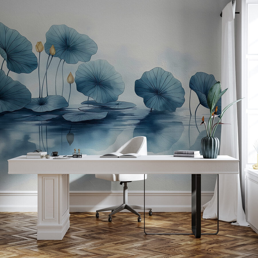 Premeňte akýkoľvek priestor pomocou tejto očarujúcej nástennej maľby s leknami ladne plávajúcimi v jemnej modrej farbe. Predstavte si, že vojdete do miestnosti a okamžite máte pocit, že ste vstúpili do pokojného rybníka – vážne, kto nepotrebuje takúto atmosféru? Jemný akvarelový efekt prináša pokojné čaro, takže je ideálny do spálne alebo útulného čitateľského kútika. Predstavte si, ako popíjate čaj a snívate, pretože pokojná scéna upokojuje myseľ. Je to ako umenie prírody, ale bez chrobákov a bahna! Vďaka tejto nástennej maľbe budú steny vypovedať o vašom jedinečnom štýle a zároveň dodajú šmrnc pokoja a nádych rozmarnosti.