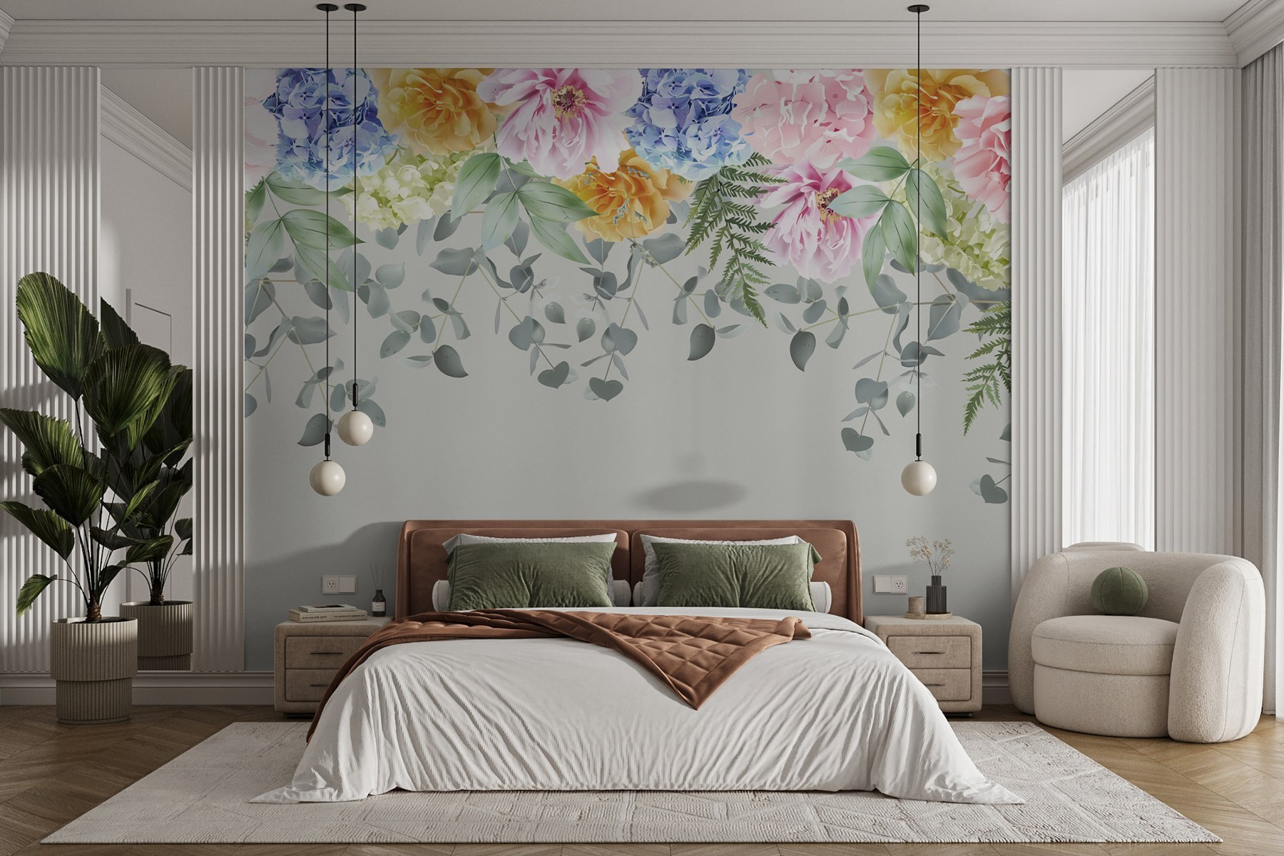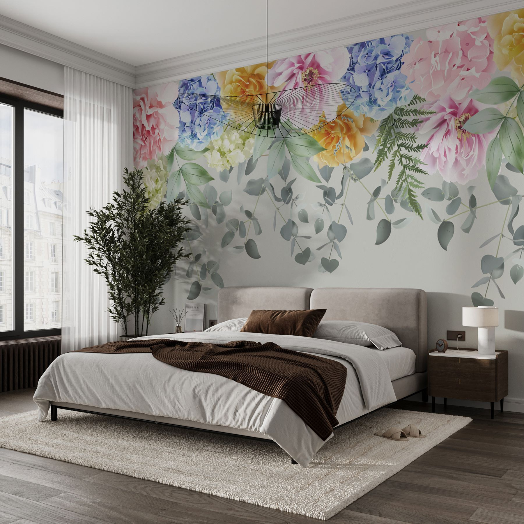 Premeňte akúkoľvek miestnosť na kvetinový raj s touto úžasnou nástennou maľbou so živou skupinou kvetov a listov. Predstavte si, že vojdete do svojho priestoru a privítajú vás rozkvitnuté pivonky a jemné hortenzie, takmer akoby sa príroda práve rozhodla usadiť na vašej stene! Ideálna na dodanie nádychu tepla a nálady, je to skvelý začiatok konverzácie – druh nástennej maľby, ktorý núti ľudí zastaviť sa a usmiať sa: “Páni, to je také pekné!” Navyše, kto by nemal rád trochu radosti inšpirovanej prírodou priamo u seba doma? Či už je to v obývacej izbe alebo v útulnom kútiku, táto nástenná maľba prináša život a farby a mení fádnosť na rozprávkovú. Len si predstavte, že sa v tomto priestore schúlite do klbka, obklopení týmito nádhernými kvetmi – ach, blaho!