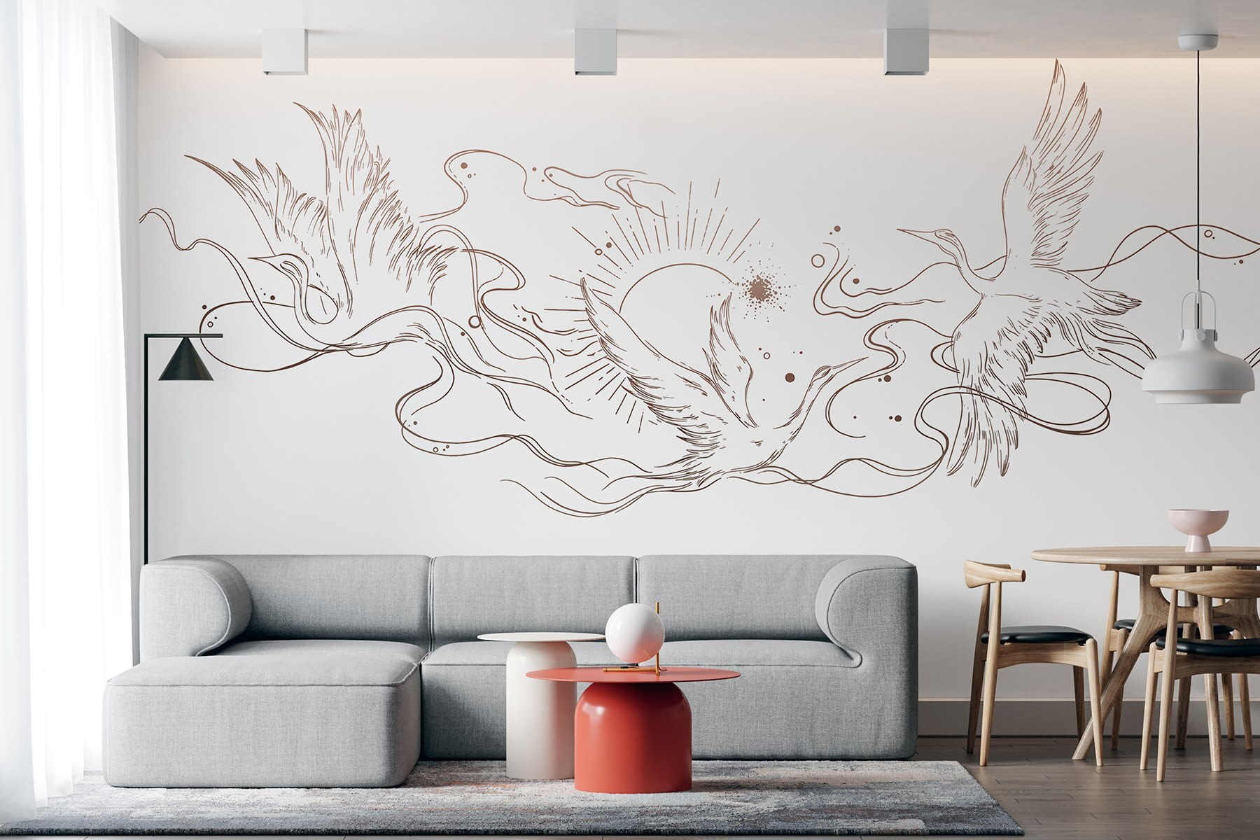 Premeňte svoje steny na pokojný únik s touto nádhernou nástennou maľbou s vtákmi tancujúcimi v slnečnom svetle. Jemné línie a decentné odtiene vdýchnu život každému priestoru a dodajú mu pocit útulnosti a prívetivosti. Predstavte si, že sa zobudíte na tento veselý výjav; je to ako mať kúsok prírody priamo doma. Perfektne sa hodí do obývačky alebo aj do zasnenej detskej izby, zahalí vašu miestnosť do tepla a rozmarnosti. Priatelia si budú myslieť, že máte atmosféru umeleckej galérie – možno to znamená, že je na rade večer pri víne, však? Pridajte túto nástennú maľbu a nechajte svoje steny rozprávať príbeh radosti a slobody.