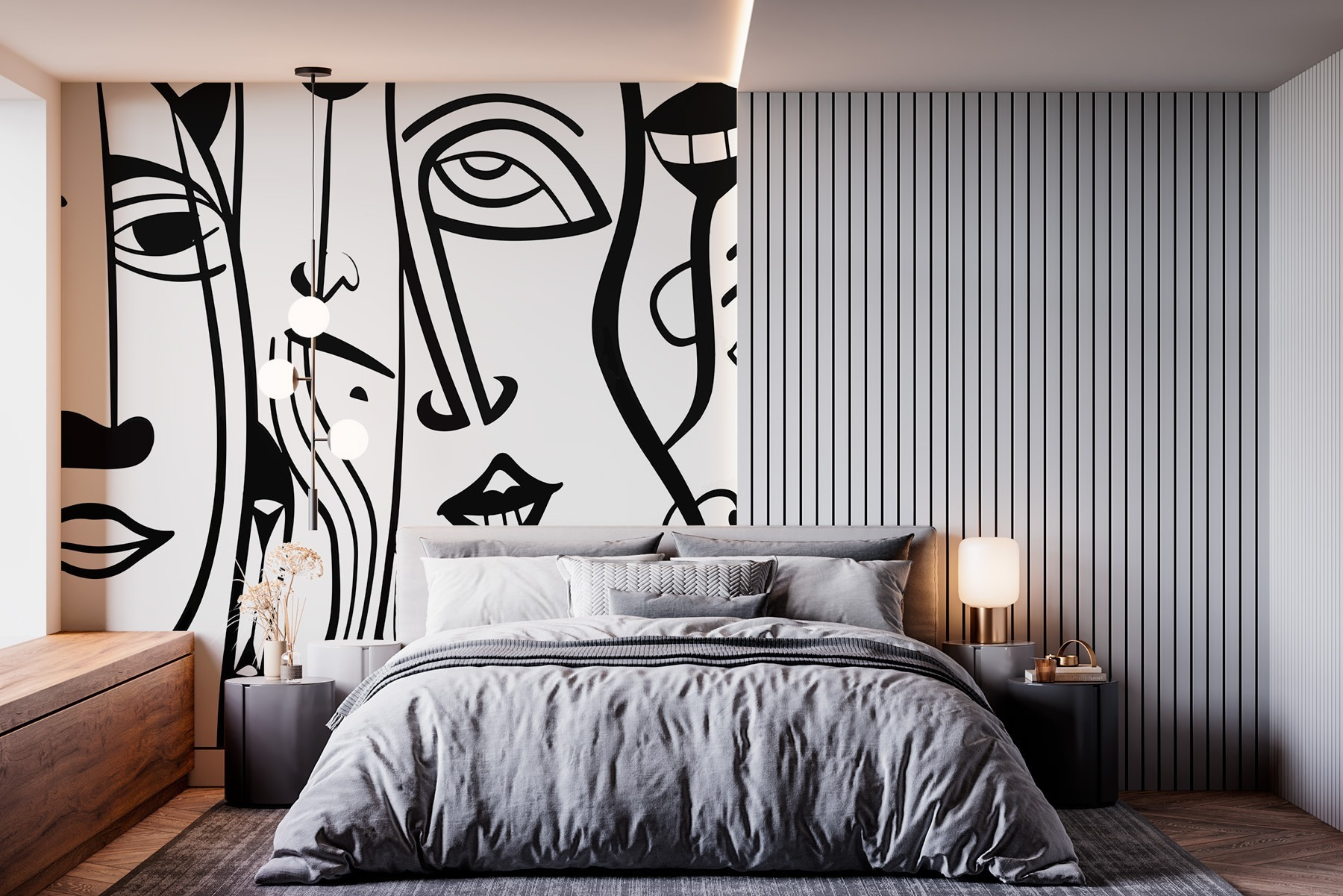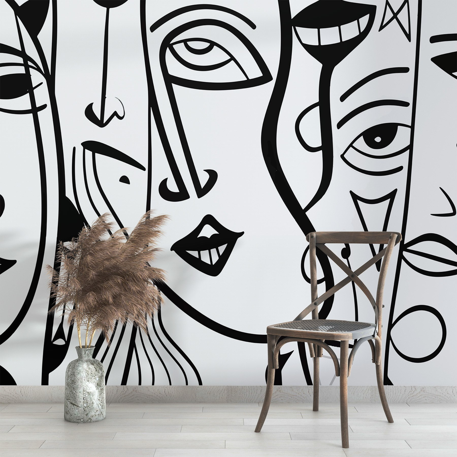 Premeňte svoj priestor pomocou tejto podmanivej čiernobielej nástennej maľby so zmesou výrazných tvárí. Je to ako mať umeleckú galériu priamo vo svojej obývačke, ale bez okázalej atmosféry. Odvážne línie a hravé tvary vyzývajú ku konverzácii – len si predstavte, že sa priatelia zastavia uprostred vety, aby ju obdivovali, a zároveň sa snažia dekódovať emócie zmrazené v týchto bizarných výrazoch.