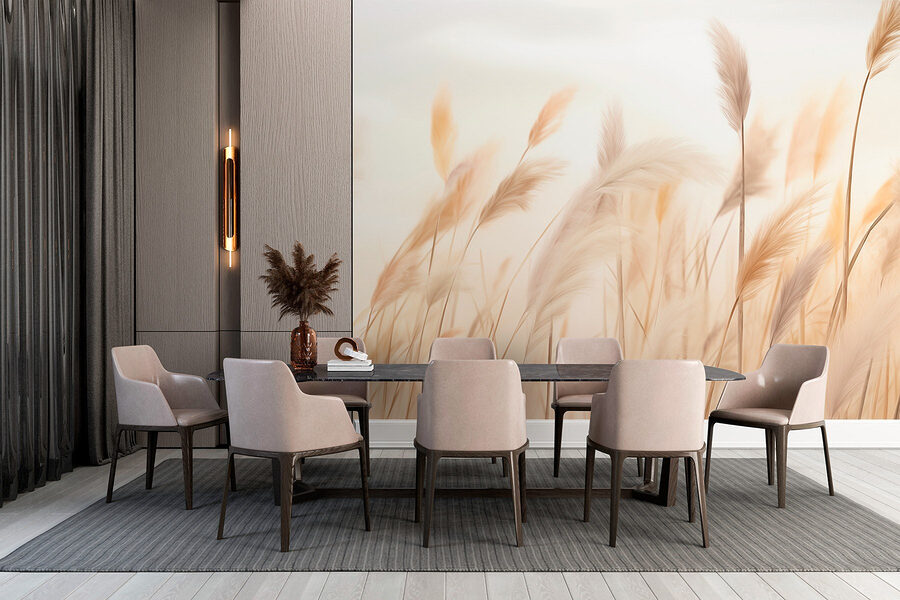 Predstavte si, že vstúpite na jemnú lúku, kde sa jemné trávy lenivo kolíšu vo vetre. Presne takú atmosféru vnesie táto fototapeta do vášho priestoru! Vďaka svojim zasneným, tlmeným tónom pôsobí ako šepot prírody, ktorý je ideálny na to, aby v každej miestnosti navodil pocit pokoja a prívetivosti.