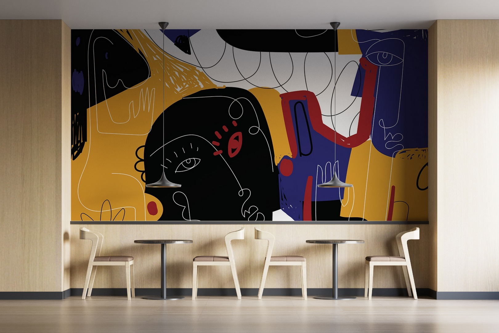Oživte každú stenu touto podmanivou nástennou maľbou s farebným umením, ktoré zobrazuje zaujímavé čierne a modré tváre. Predstavte si, že vstúpite do miestnosti, kde každý pohľad odhalí novú emóciu alebo príbeh, ktorý čaká na rozprávanie. Je to ako začiatok konverzácie, ale s farbami namiesto rozhovorov – ideálne pre to trápne ticho na vašom najbližšom stretnutí. Kombinácia odvážnych farieb a bizarných línií vdýchne život do nevýrazných priestorov, takže je ťažké neusmievať sa pri každej prechádzke. Táto nástenná maľba vyžaruje energiu a kreativitu, či už sa nachádza v útulnej obývačke alebo v živej kaviarni. Nie je to len dekorácia, je to zážitok!