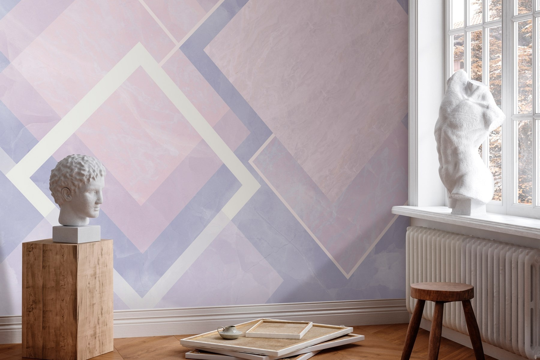 Premeňte svoj priestor pomocou tejto nádhernej nástennej maľby s jemnými pastelovými geometrickými vzormi. Je to ako upokojujúce objatie pre vaše steny – ideálne na vytvorenie pokojného útočiska pred chaosom každodenného života. Predstavte si to: popíjanie čaju počas príjemného popoludnia, obklopení jemnými odtieňmi, ktoré vám pripomínajú západy slnka ako z cukrovej vaty. Každý tvar tancuje po stene a prináša pocit harmónie, vďaka ktorej sa každá miestnosť môže cítiť príjemnejšie. Či už ide o čitateľský kútik, alebo o nečakané miesto, ktoré ste chceli vyzdobiť, táto fototapeta dodá ten správny nádych. Kto by nechcel utiecť do geometrickej krajiny zázrakov?