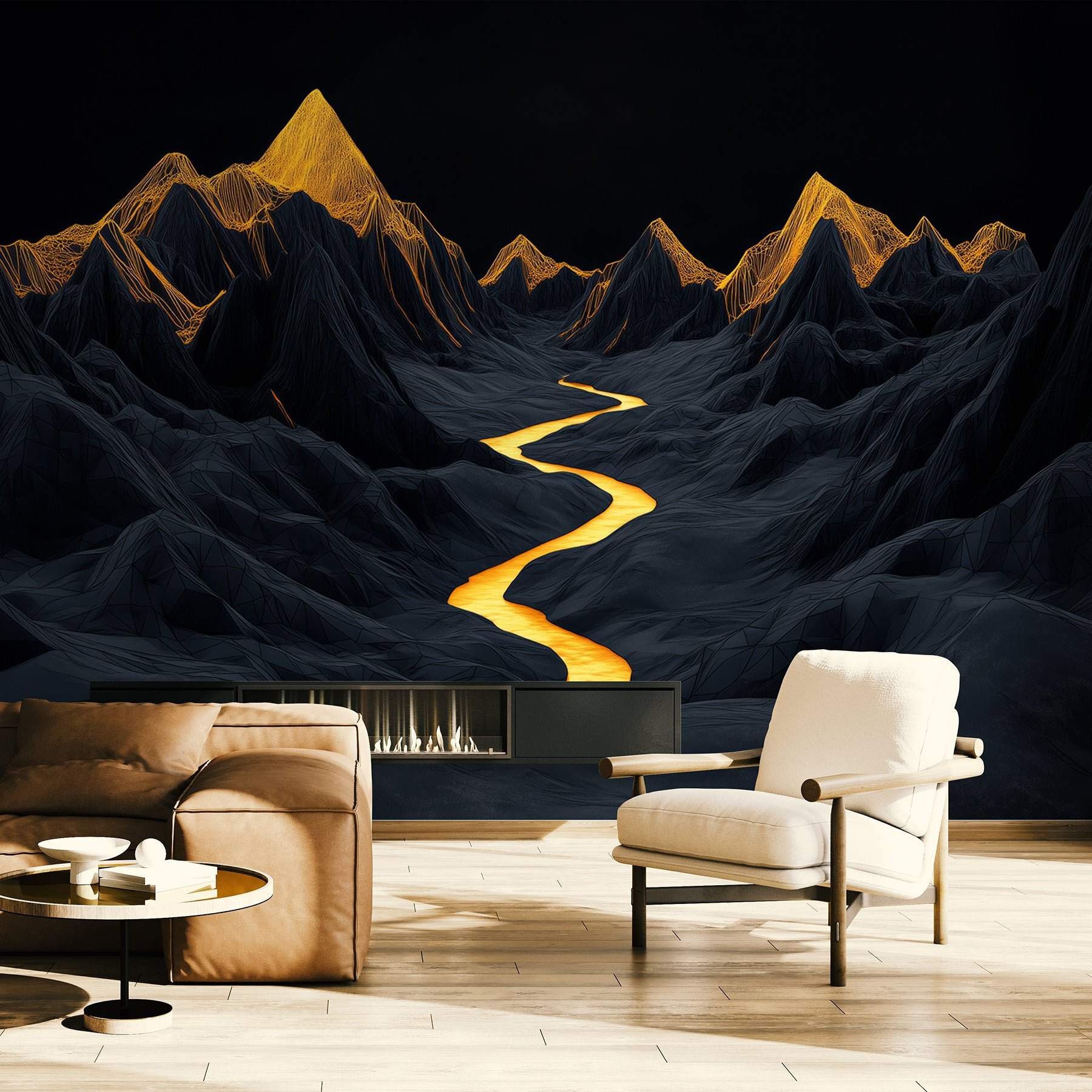 Premeňte akýkoľvek priestor na pokojný únik pomocou tejto úžasnej nástennej maľby zobrazujúcej rieku vinúcu sa cez majestátne hory. Predstavte si, že popíjate teplý nápoj a pritom sa pozeráte na zlatistú rieku trblietajúcu sa na pozadí tmavých, dramatických vrcholov – je to ako preniesť prírodu priamo do vašej obývačky. Ideálne pre každého, kto sníva o dobrodružstve alebo len potrebuje pokojný kútik na oddych. Či už je ústredným bodom miestnosti, alebo jemným pozadím každodenného života, táto nástenná maľba dodáva závan divokej prírody bez toho, aby bola potrebná turistická výstroj. Len si to predstavte: útulné večery, mäkké svetlo a ten nádherný výhľad každý deň.