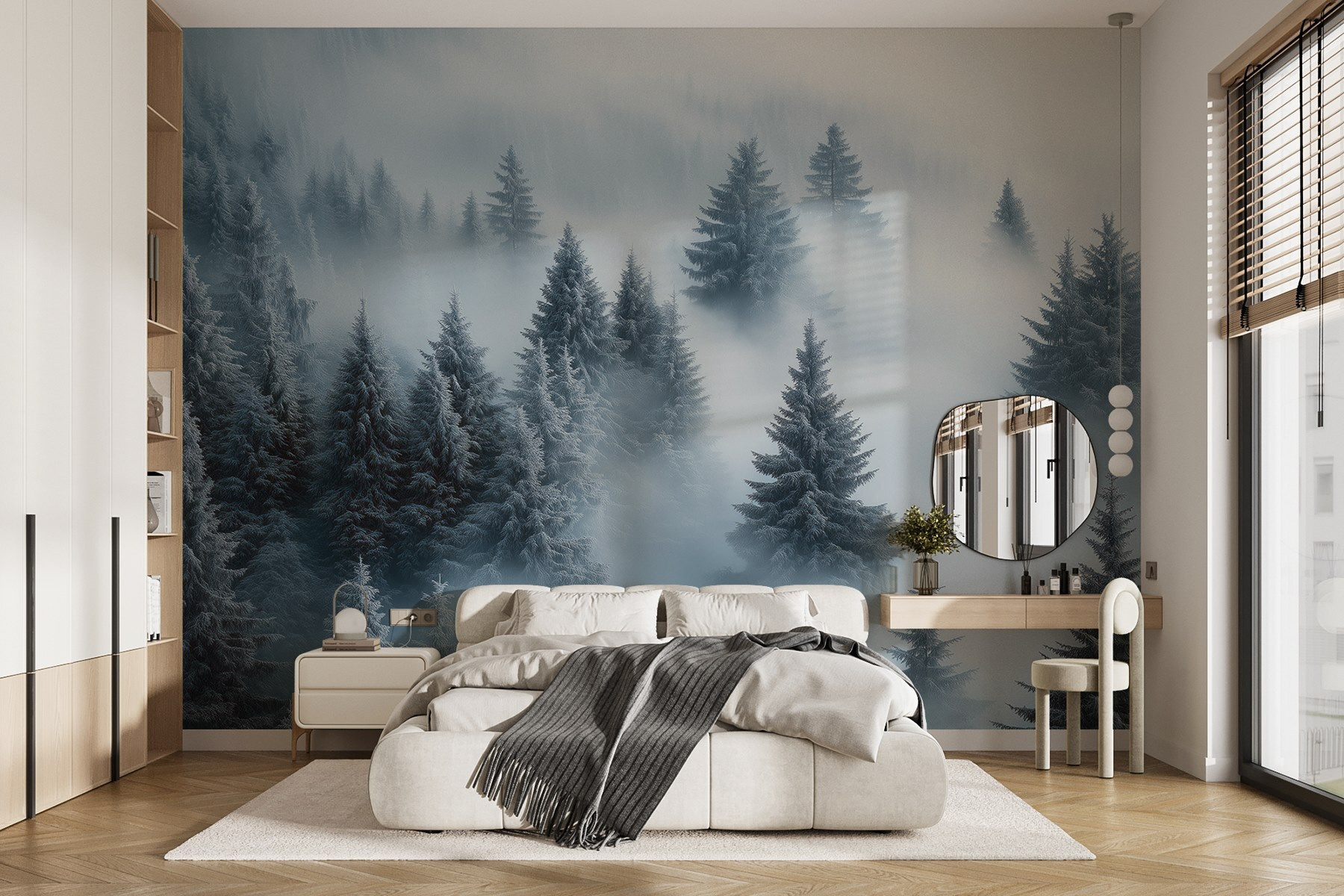 Premeňte svoj priestor na zimnú krajinu zázrakov s touto úžasnou nástennou maľbou so zasnenou skupinou stromov posypaných snehom. Je to ako vstúpiť do pokojného lesa, kde každý pohľad pôsobí ako príjemné objatie od prírody. Predstavte si, že popíjate svoj obľúbený horúci nápoj, zabalení v deke, a pozeráte na mäkké, zasnežené konáre, ktoré sa tak jemne kolíšu. Táto nástenná maľba, ideálna do obývačky alebo pokojnej spálne, vyzýva k pokoju a pohode a bez námahy prenesie každého, kto do nej vstúpi, do šepkajúceho lesa. Kto by si nechcel priniesť kúsok tohto kúzla do interiéru?