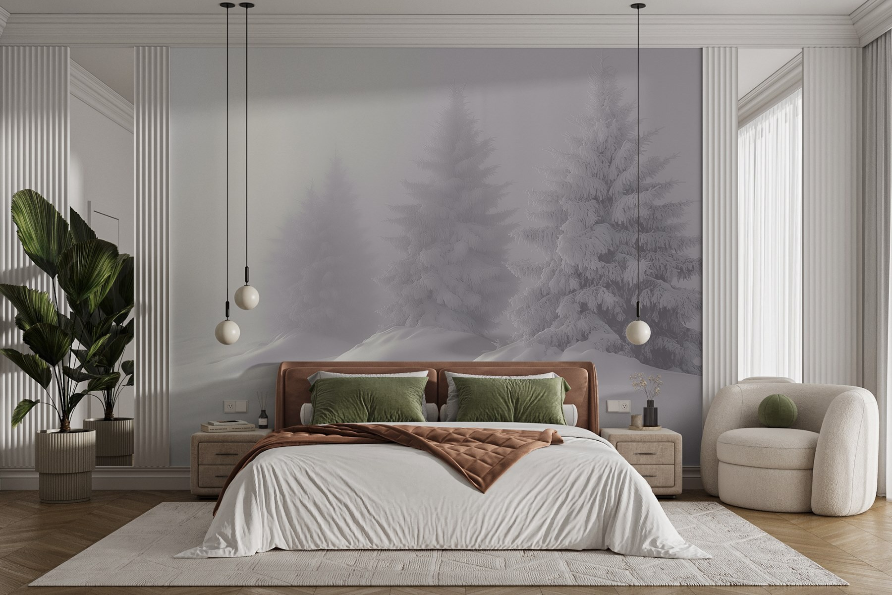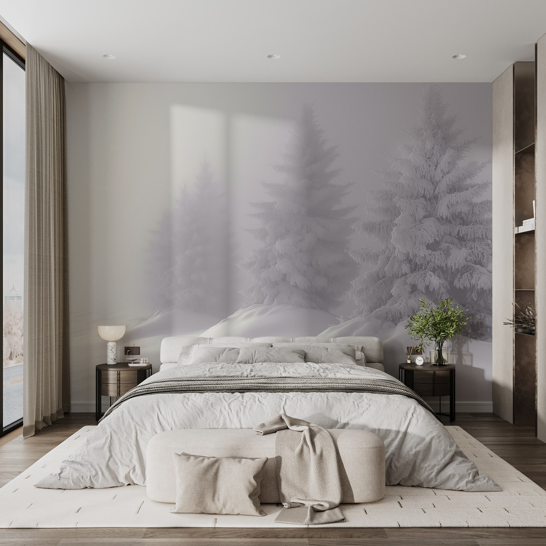 Premeňte akúkoľvek miestnosť na pokojnú zimnú krajinu s touto úžasnou nástennou maľbou zasnežených stromov. Predstavte si, že sa zobudíte do scény, ktorá pôsobí ako jemné objatie prírody, priamo u vás doma. Jemná biela a chladná sivá vytvárajú upokojujúcu atmosféru – ideálnu na útulné večery s hrnčekom horúceho kakaa. Je to, akoby ste si priniesli tichý les priamo k svojim stenám a pozývali na dotyk pokoja a kúzla. Predstavte si priateľov, ktorí sú vtiahnutí do scény a zdieľajú príbehy o zasnežených túrach alebo najnovších dobrodružstvách pri stavaní snehuliakov. Táto nástenná maľba nie je len dekoráciou – rozpráva príbeh.
