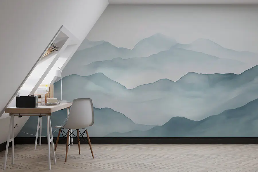 Premeňte akúkoľvek miestnosť na pokojné miesto na oddych s nástennou maľbou “Mlhavé pohorie”. Jej jemné, tlmené tóny vás prenesú priamo do hmlistého rána v horách, kde je svieži vzduch a všetko pôsobí pokojne. Predstavte si, že popíjate kávu a pritom sa pozeráte na tieto zasnené vrcholy – hovoríme o zlepšení nálady! Perfektne sa hodí do útulných zákutí alebo ako výrazný kúsok do obývačky. Táto nástenná maľba vás vyzýva, aby ste sa ľahšie nadýchli a unikli chaosu, aj keď len na chvíľu. Kto by povedal, že stena môže byť taká… zenová? Pridajte toto majstrovské dielo a nechajte hory pôsobiť čarovne!