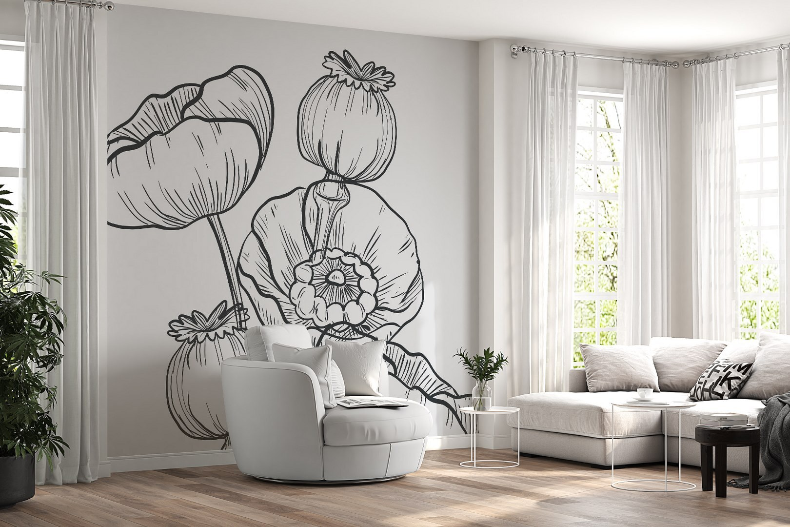 Rozžiarte každú miestnosť touto úžasnou nástennou maľbou so zložitými kresbami kvetov na sviežom bielom pozadí. Je to ako pozvať si domov záhradu bez toho, aby ste sa museli starať o ich zalievanie – rozhodne výhra! Predstavte si, že popíjate rannú kávu a máte pocit, že ste obklopení prírodou, aj keď máte výhľad na mesto. Každý okvetný lístok a púčik v dizajne rozpráva príbeh krásy a pokoja, čo je ideálne na vytvorenie pokojného kútika na relaxáciu. Navyše je to podnet na rozhovor – kto by sa nechcel rozprávať o tejto nádhernej kvetinovej atmosfére? Premeňte svoj priestor a nechajte hovoriť kvety!