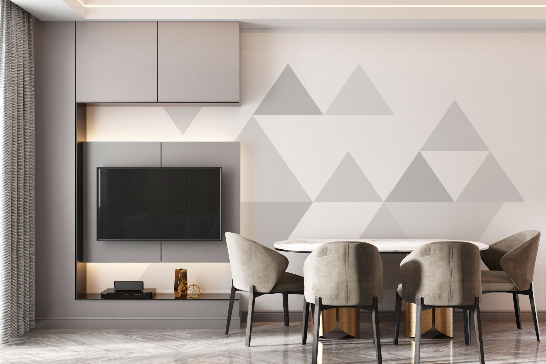 S touto nástennou maľbou “Skupina trojuholníkov v rade” premeníte každú miestnosť na moderné dielo. Je to ako geometrické puzzle, ale oveľa štýlovejšie. Tieto elegantné trojuholníky tancujú po stene a prinášajú energiu a živosť bez toho, aby boli príliš hlasné. Predstavte si, že vojdete do svojho priestoru a okamžite sa budete cítiť inšpirovaní, akoby ste mohli zdolať celý svet – alebo aspoň zvládnuť tú kopu bielizne. Perfektne sa hodí do útulnej obývačky alebo do moderného pracovného priestoru. Navyše je to skvelý podnet na rozhovor. Priatelia sa budú chcieť dozvedieť, kde ste našli taký skvelý kúsok. Kto by povedal, že trojuholníky môžu byť také elegantné?