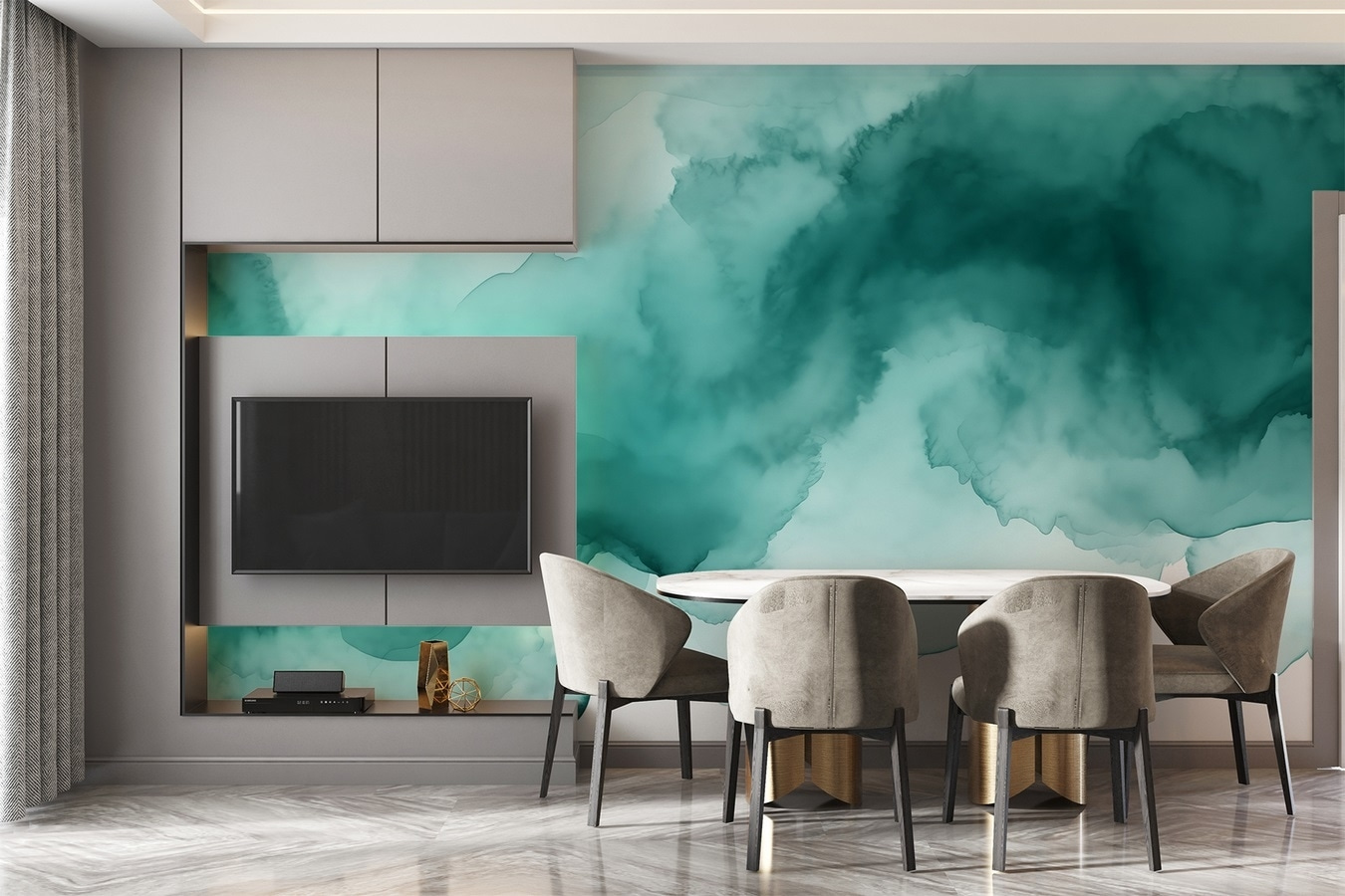 Premeňte svoj priestor pomocou nástennej maľby “Plynúce odtiene pokojnej tealovej”, ktorá pripomína ponorenie sa do pokojného oceánu. Predstavte si, že sa každé ráno prebúdzate do týchto upokojujúcich modrých tónov – je to ako mini dovolenka priamo na vašej stene. Jemné, akvarelové víry prinášajú pocit pokoja, ideálny pre útulný čitateľský kútik alebo živú obývačku. Len si predstavte, ako popíjate kávu, pozeráte na túto nástennú maľbu, zatiaľ čo vaše starosti odplávajú ako oblaky. Nie je to len dekorácia, je to zážitok, nálada, jemná pripomienka dýchania a relaxácie. Kto by povedal, že pokoj môže vyzerať tak krásne?