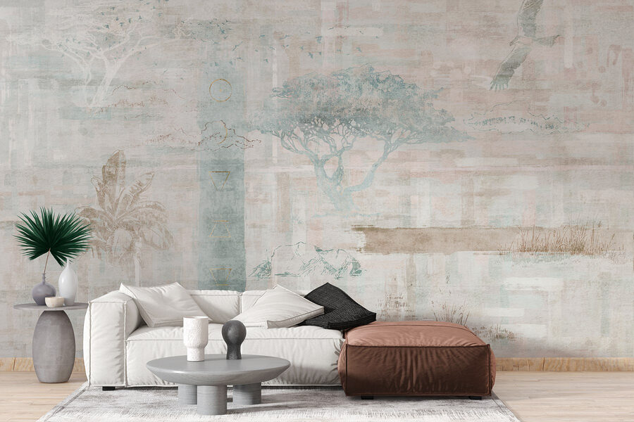Premeňte akúkoľvek miestnosť na pokojné útočisko pomocou tejto úžasnej nástennej maľby so stromami a vtákmi. Predstavte si to: vojdete a namiesto obyčajných stien vás privíta pokojná atmosféra džungle. Je to ako preniesť si do interiéru kúsok prírody – bez hmyzu. Mäkké farby a jemné vzory pôsobia sviežo a upokojujúco, takže sú ideálne do obývačky alebo aj do útulného kútika na čítanie. Predstavte si, že popíjate kávu obklopení šepotom stromov a štebotom vtákov. Malý kúsok raja priamo u vás doma!