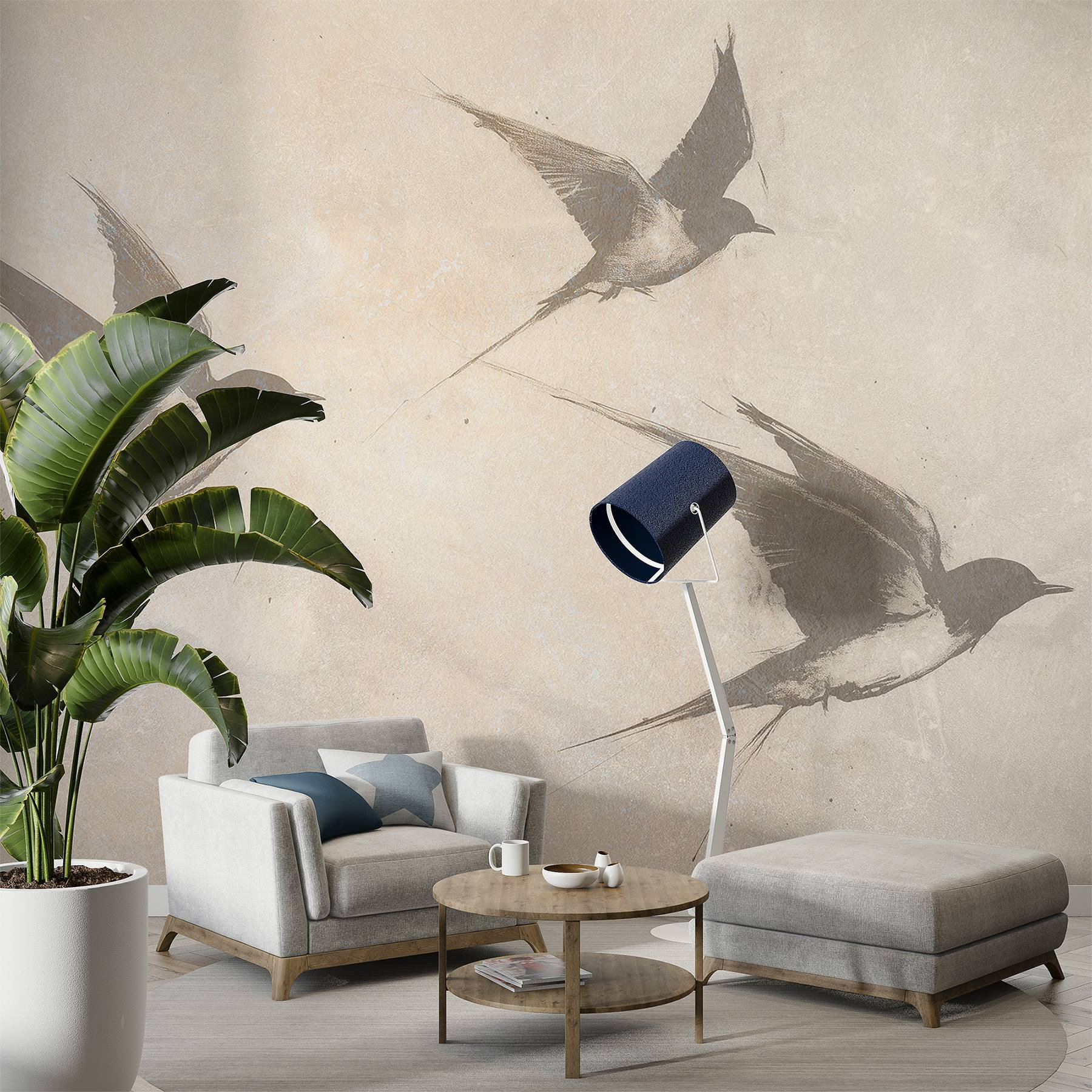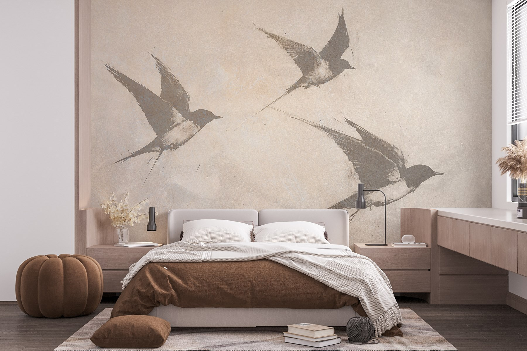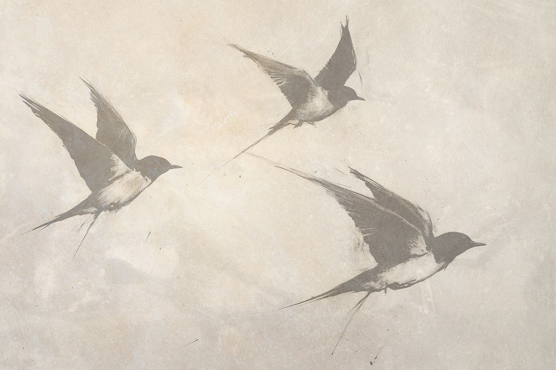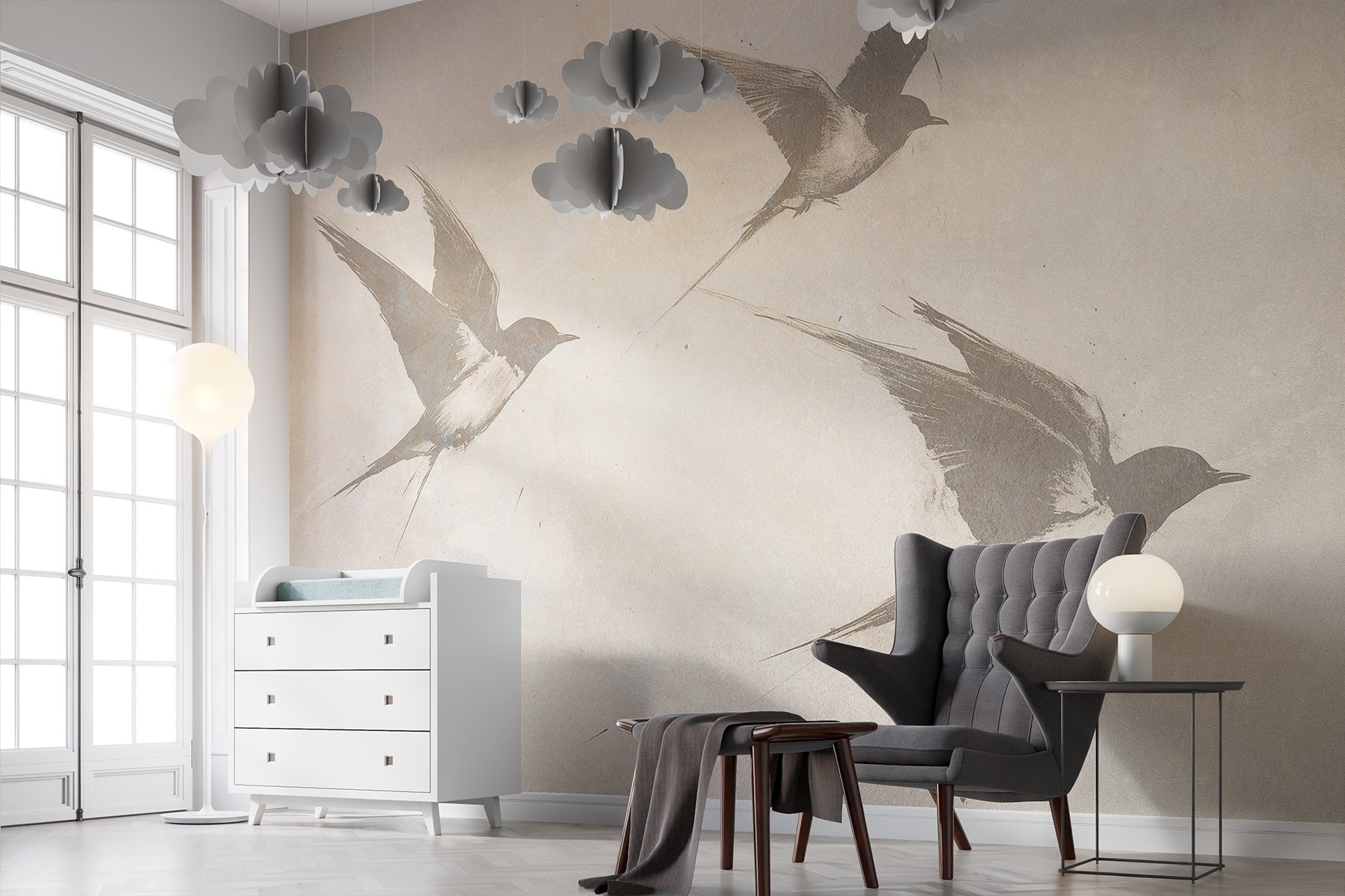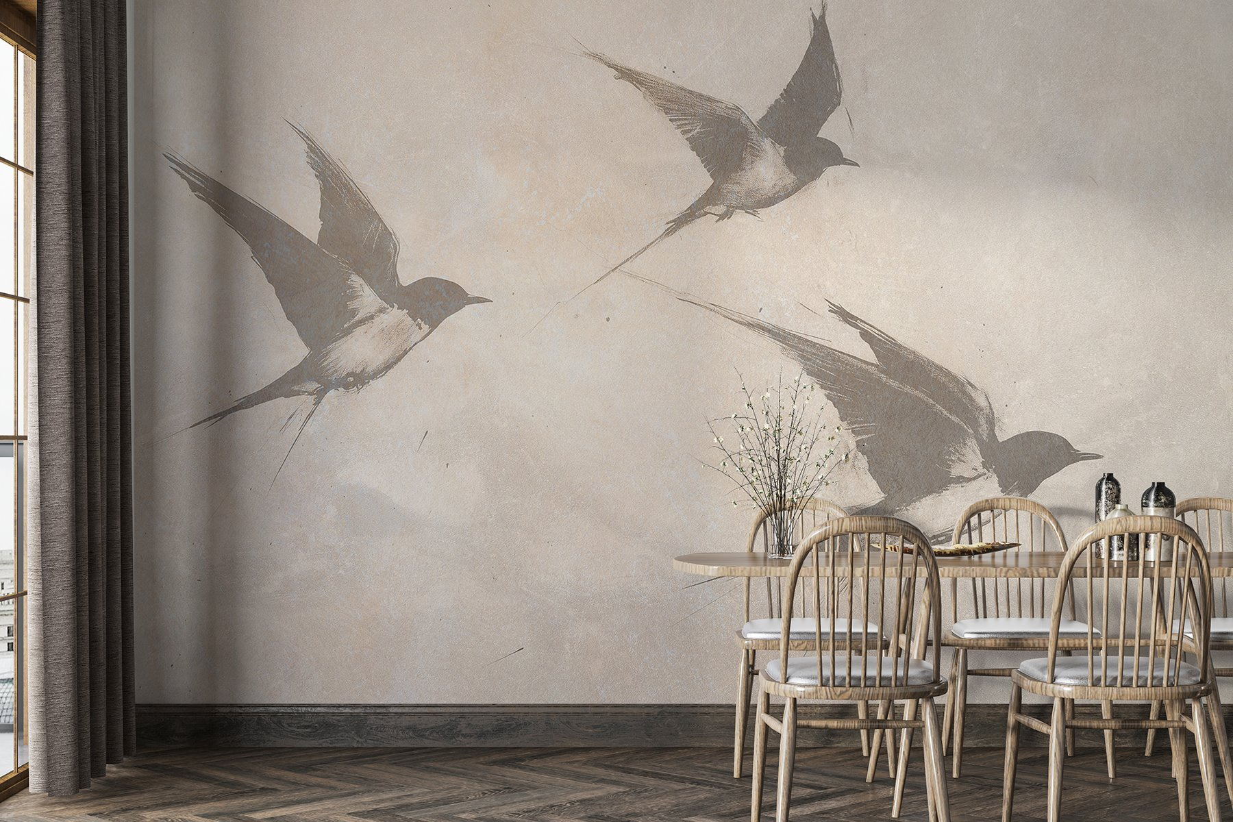 Premeňte akýkoľvek priestor na pokojné útočisko s touto úžasnou nástennou maľbou vtákov vznášajúcich sa na oblohe. Jemné farby a jemné línie vytvárajú upokojujúcu atmosféru, ktorá je ideálna do obývačky alebo útulného čitateľského kútika. Len si predstavte, že sa schúlite do klbka s dobrou knihou a jemný šepot imaginárnych krídel bude usmerňovať vaše myšlienky. Je to ako mať kúsok prírody priamo na stene, ktorý vyzýva k pokoju a pocitu slobody. Táto nástenná maľba je nádherným doplnkom, či už vo vás vyvolá sny o vzdialených miestach, alebo vám len vyčarí úsmev na tvári. Kto by nechcel mať pri sebe niekoľko operených priateľov, ktorí by sa s ním zabávali celý deň?