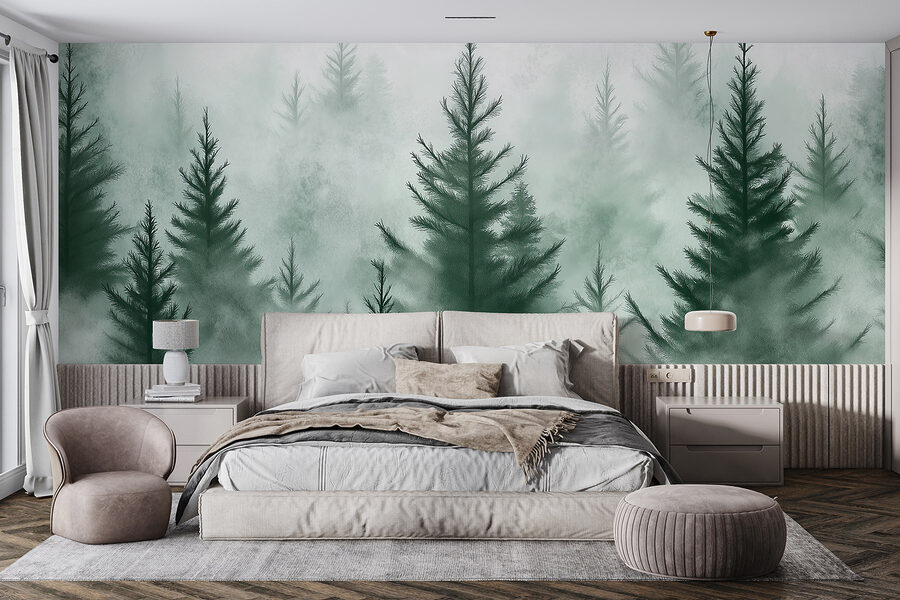 Pomocou nástennej maľby “Skupina stromov v hmle” premeníte akýkoľvek priestor na pokojné útočisko. Predstavte si, že sa prebúdzate do pokojnej krásy hmlistých lesov – je to ako horské útočisko priamo u vás doma. Táto fototapeta vás vtiahne svojimi jemnými zelenými odtieňmi a snovými vibráciami, vďaka ktorým sa každá miestnosť bude cítiť otvorene a pokojne. Je ideálna pre útulný čitateľský kútik alebo aj pre tú prázdnu stenu, ktorá si priam žiada charakter. Navyše, kto by nemal rád dotyk prírody, ktorý si nevyžaduje zalievanie? Stačí ho zavesiť, odstúpiť a nechať sa unášať pokojom ako jemný vánok. Ideálne pre snívajúcich ľudí aj milovníkov prírody!