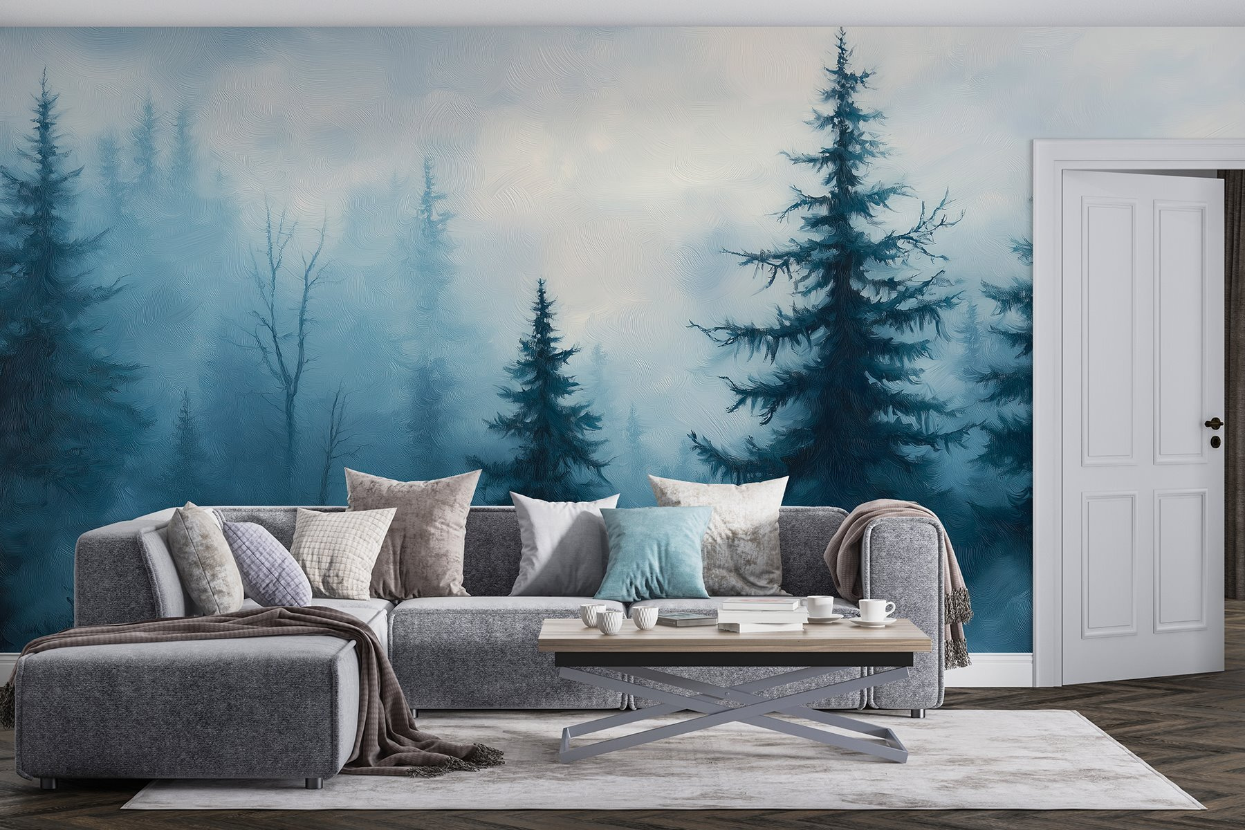 Premeňte svoj priestor pomocou očarujúceho kúzla nástennej maľby “Hmlistý les so stromami”. Predstavte si, že vstúpite do hmlistého lesa, kde každý pohľad pôsobí ako jemný únik do prírody. Jemné, tlmené farby zahalia vašu miestnosť do upokojujúcej atmosféry – ideálne pre útulný čitateľský kútik alebo pokojné útočisko v spálni.