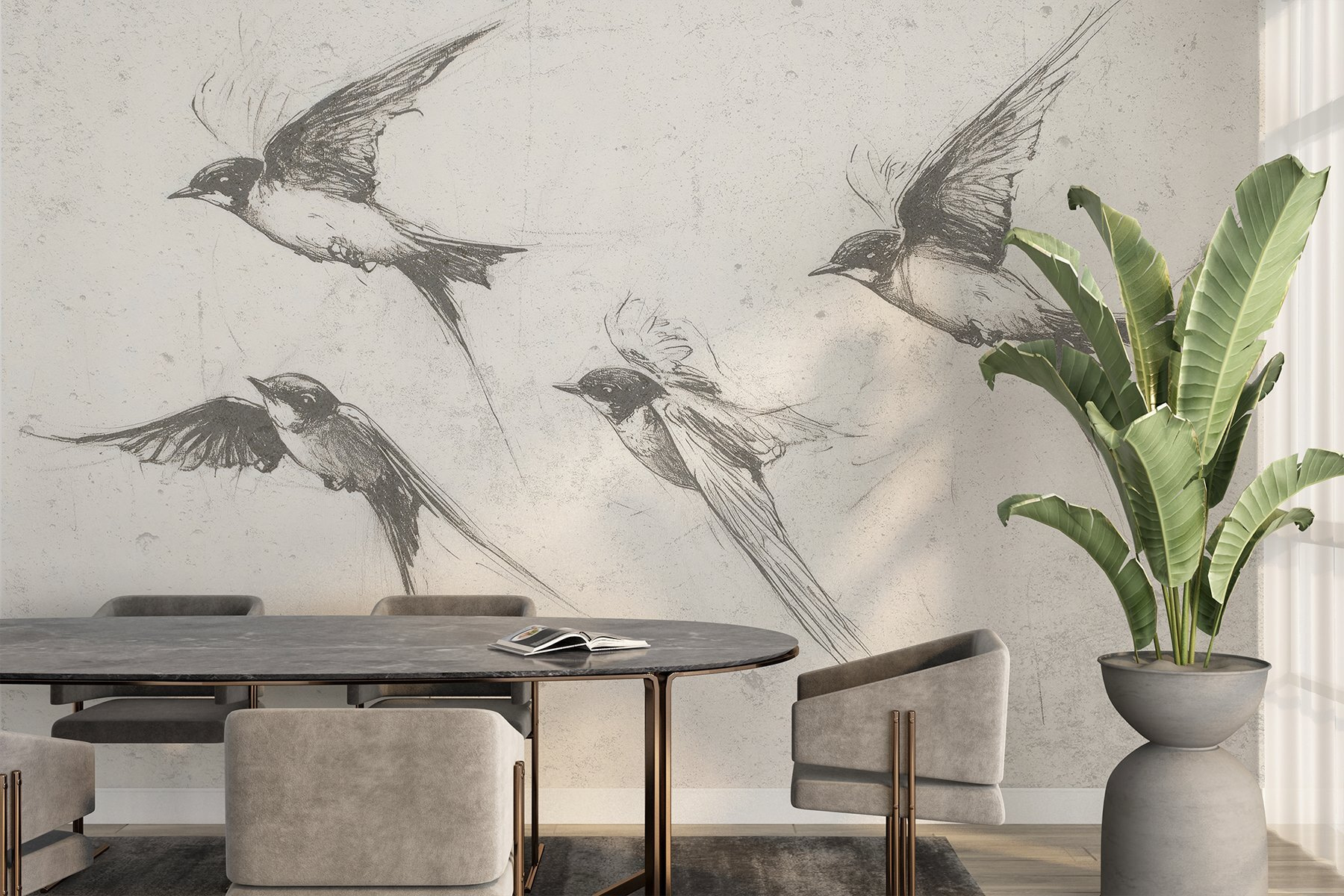 Predstavte si, že vstúpite do priestoru, kde sa zdá, že vtáky lietajú priamo zo steny. Táto akvarelová fototapeta “Skupina letiacich vtákov” vnesie tento rozmarný nádych do každej miestnosti. S jemnými odtieňmi a ladnými ťahmi zachytáva pocit slobody – ako jemný vánok, ktorý sa preháňa okolo. Perfektne sa hodí do útulného zákutia alebo živého vchodu a pôsobí, akoby sa príroda vkrádala priamo do vášho domova. Predstavte si, ako popíjate čaj alebo čítate knihu, zatiaľ čo sa títo operení priatelia ticho vznášajú okolo. Nie je to len dekorácia, je to malý únik, pripomienka, že krása je všade okolo a čaká, kým si ju všimnete.