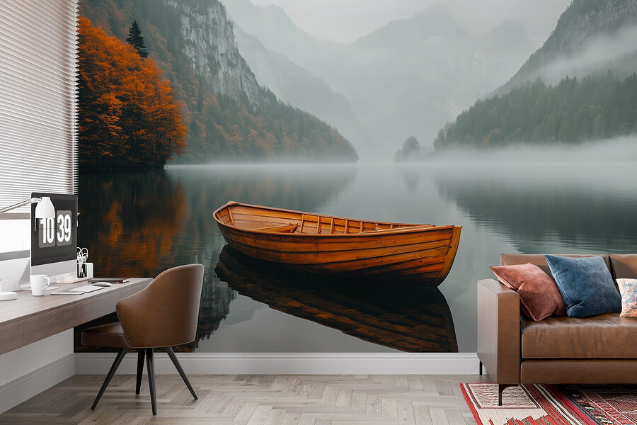 S nástennou maľbou “Loďka na jazere” premeníte každú miestnosť na kúsok pokoja. Tento úžasný kúsok zachytáva pokojnú krásu hmlistého jazera, kde sa zdá, že jemná drevená loďka sa bez námahy vznáša a ozýva sa šepot pokoja. Predstavte si, že vstúpite do svojho priestoru a pocítite, ako vás táto pokojná atmosféra zaplavuje – ako každodenná mini dovolenka! Žiarivé pomaranče zo stromov vystupujú na pozadí jemnej hmly, takže je to pastva pre oči. Je to ako pripomienka, aby ste sa zastavili, zhlboka dýchali a možno aj nasmerovali svojho vnútorného prieskumníka. Ideálne pre každého, kto sa chce dotknúť nádhery prírody bez bahna a sprejov proti hmyzu!