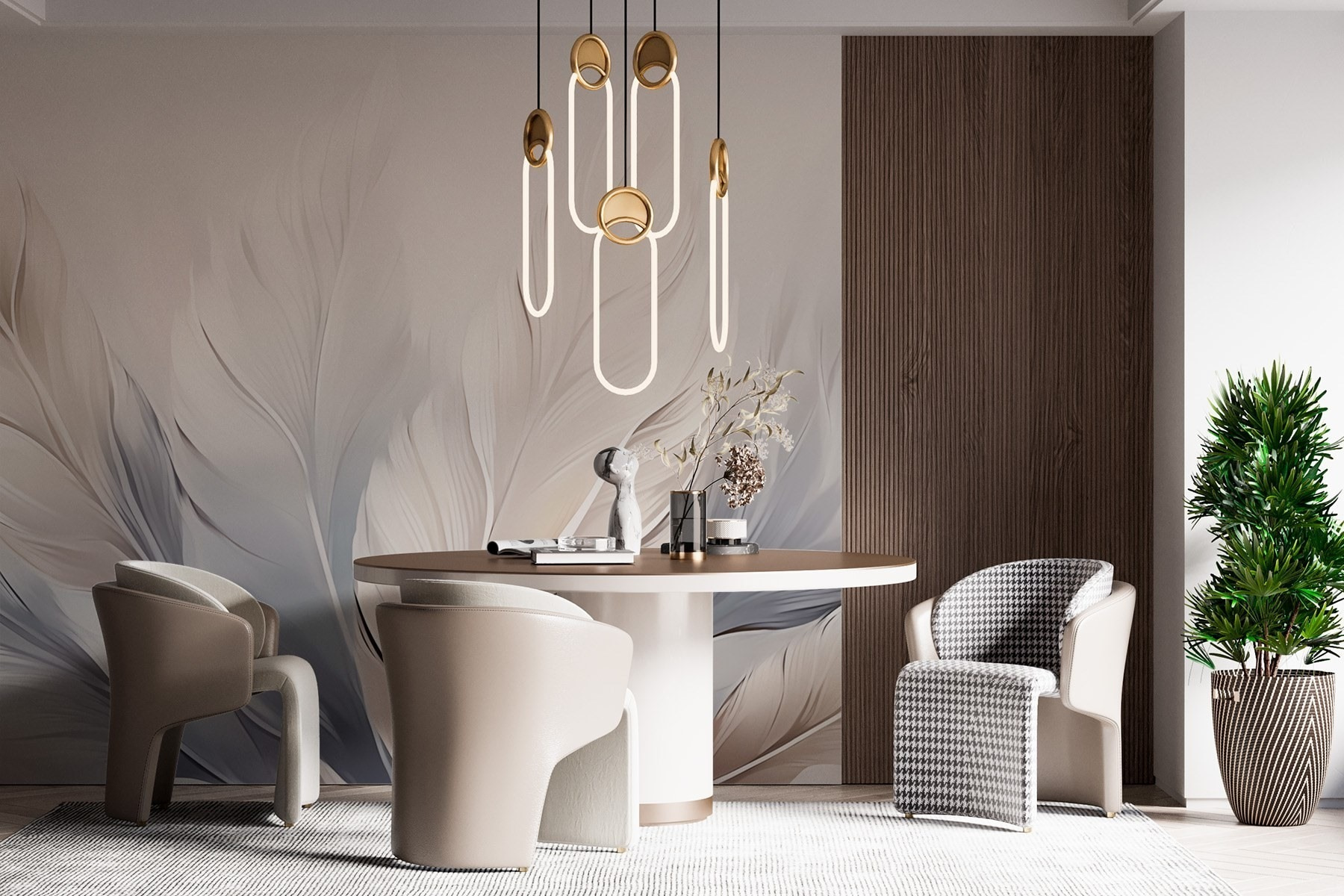 Či už ide o útulný čitateľský kútik alebo sofistikovanú jedáleň, táto nástenná maľba bez námahy umocní atmosféru. Ide predsa o tie hrejivé a príjemné pocity, nie? Navyše je to fantastický podnet na konverzáciu. Priatelia sa možno ocitnú v zajatí a budú premýšľať, ako dosiahnuť takýto útulný vzhľad. S dotykom prírody u vás doma každý pohľad vyvolá úsmev. Nechajte kúzlo týchto pierok zahaliť váš priestor do pokoja!