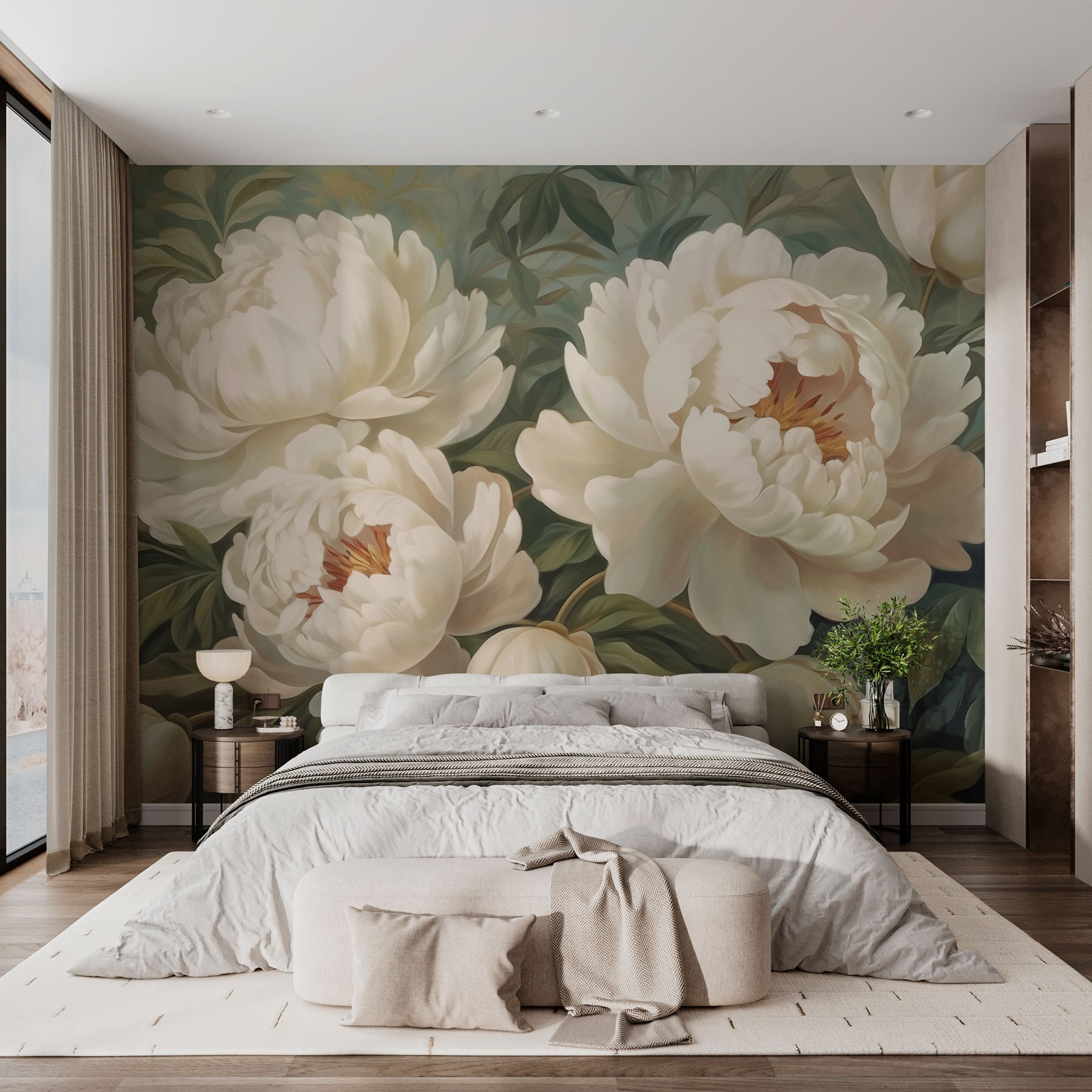 Premeňte každú miestnosť pomocou tejto očarujúcej nástennej maľby, ktorá zobrazuje svieže kvety s jemnými bielymi okvetnými lístkami. Predstavte si, že vstúpite do priestoru, kde jemné pivonky zachytávajú svetlo, vďaka čomu sa celé miesto bude cítiť ako pokojné záhradné útočisko. Je ideálna na dni, keď sa vám vonkajší svet zdá príliš chaotický – stačí sa na ňu pozrieť a *dýchať*.