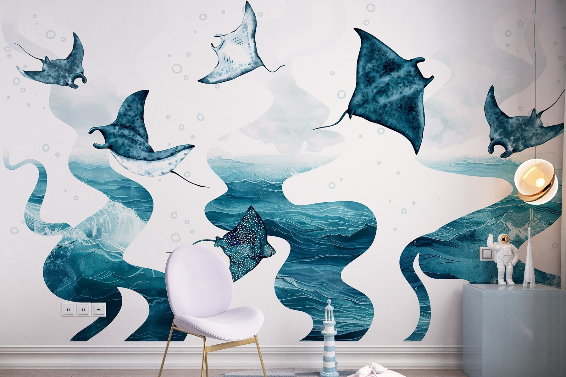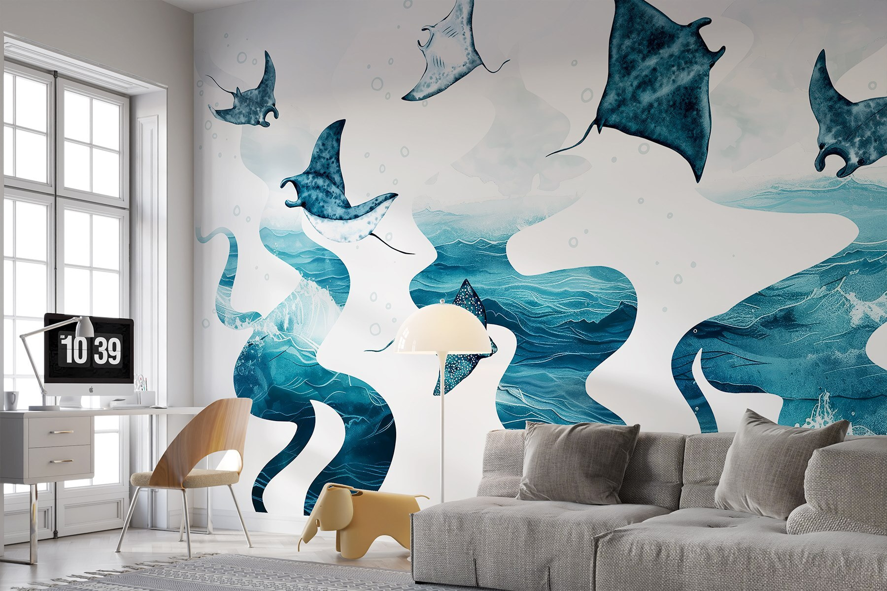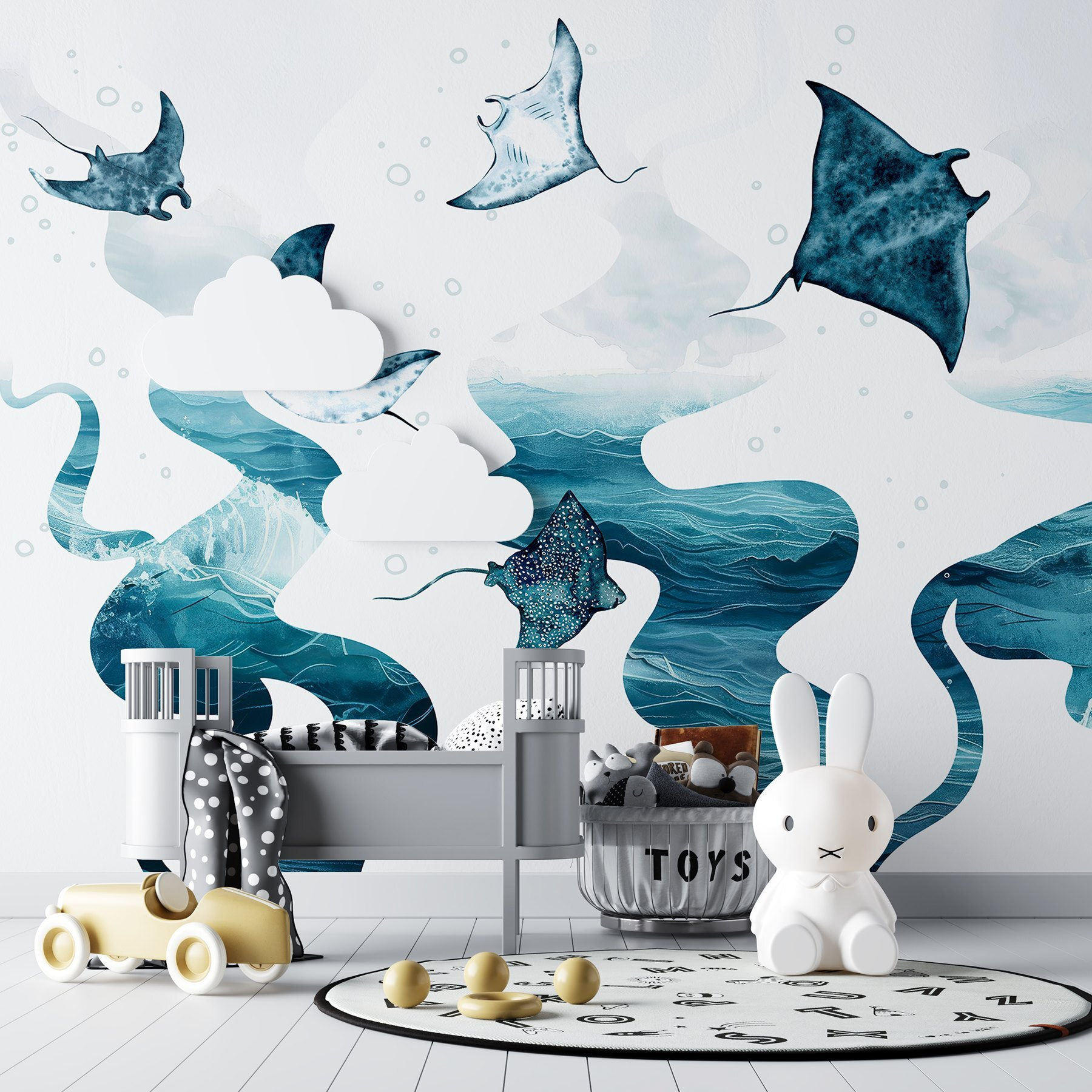 Premeňte akýkoľvek priestor na pokojný podmorský únik s touto úžasnou nástennou maľbou rají, ktoré sa ladne plavia vo vode. Predstavte si, že vstúpite do miestnosti, kde upokojujúca modrá farba vytvára pokojnú atmosféru, takmer ako na mini dovolenke priamo u vás doma. Vďaka ľahkému plynutiu dizajnu sa vám bude snívať o vlnách oceánu a jemnom vánku, takže je ideálny pre plážový kútik alebo pohodovú obývačku. Navyše, kto by nemal rád raje? Sú ako nežní morskí obri, ktorí na vaše steny vnesú nádych zázraku a kvapku osobnosti. Nie je to len dekorácia, je to každodenná pripomienka krásy prírody, ktorá jemne inšpiruje k relaxácii a snívaniu o útekoch k moru. Ponorte sa do tejto nástennej maľby a nechajte svoju fantáziu plávať voľne!