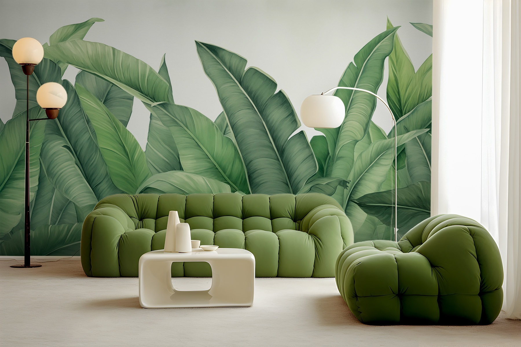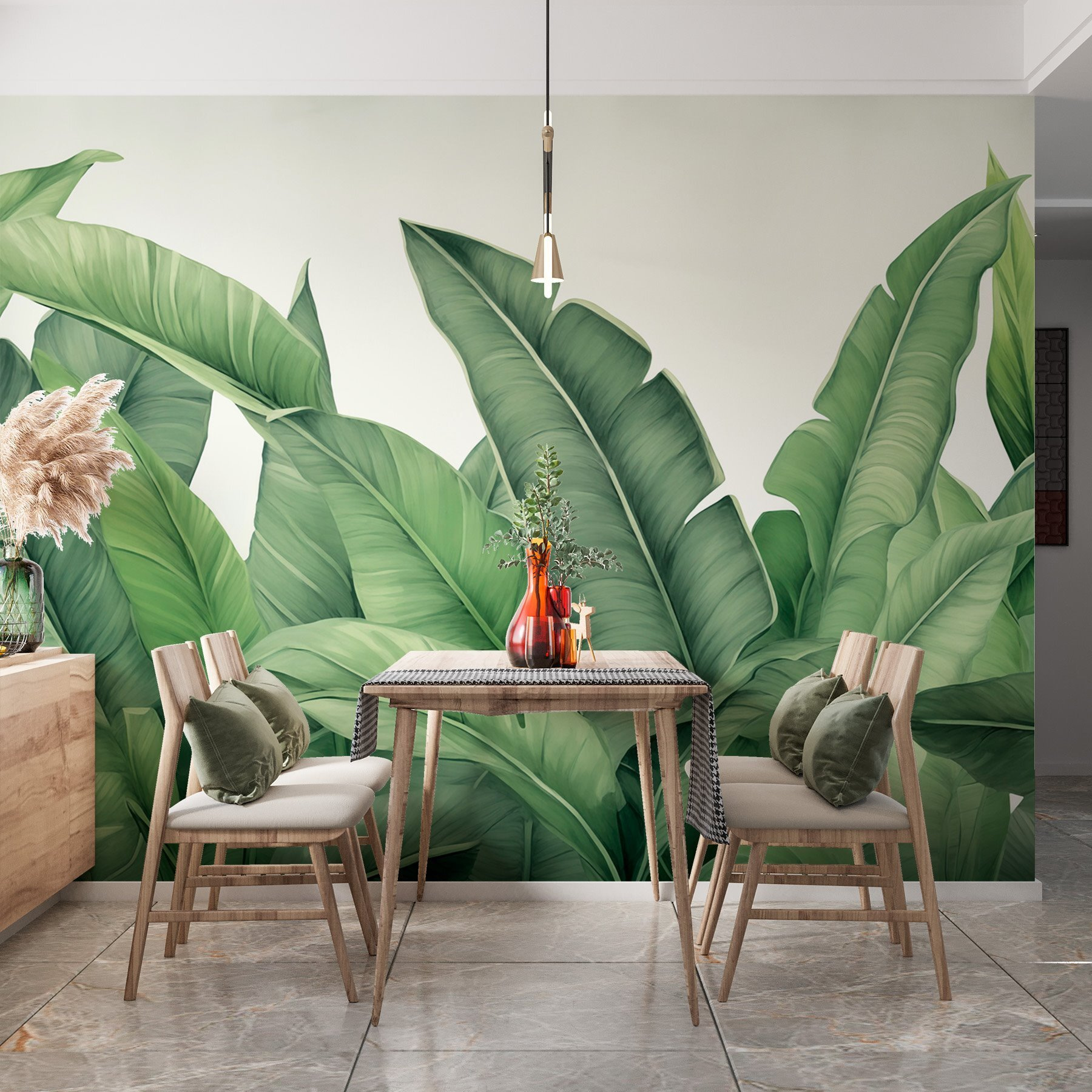 Premeňte svoj priestor na zelenú oázu pomocou tejto nádhernej nástennej maľby so sviežimi listami. Predstavte si, že vstúpite do miestnosti, v ktorej sa budete cítiť ako na tropickom úteku – je to ako preniesť vonkajší svet dovnútra bez otravných chrobákov. Žiarivá zeleň a prírodné tvary vytvárajú osviežujúcu atmosféru, ktorá je ideálna pre každý kút, ktorý potrebuje život. Predstavte si, ako sa krútite pri dobrej knihe alebo organizujete útulné stretnutie obklopení veselou prírodou. Nie je to len dekor, je to atmosféra! Stačí jediný pohľad a zažiari radosť. Navyše, kto by sa nechcel cítiť ako na permanentnej dovolenke?