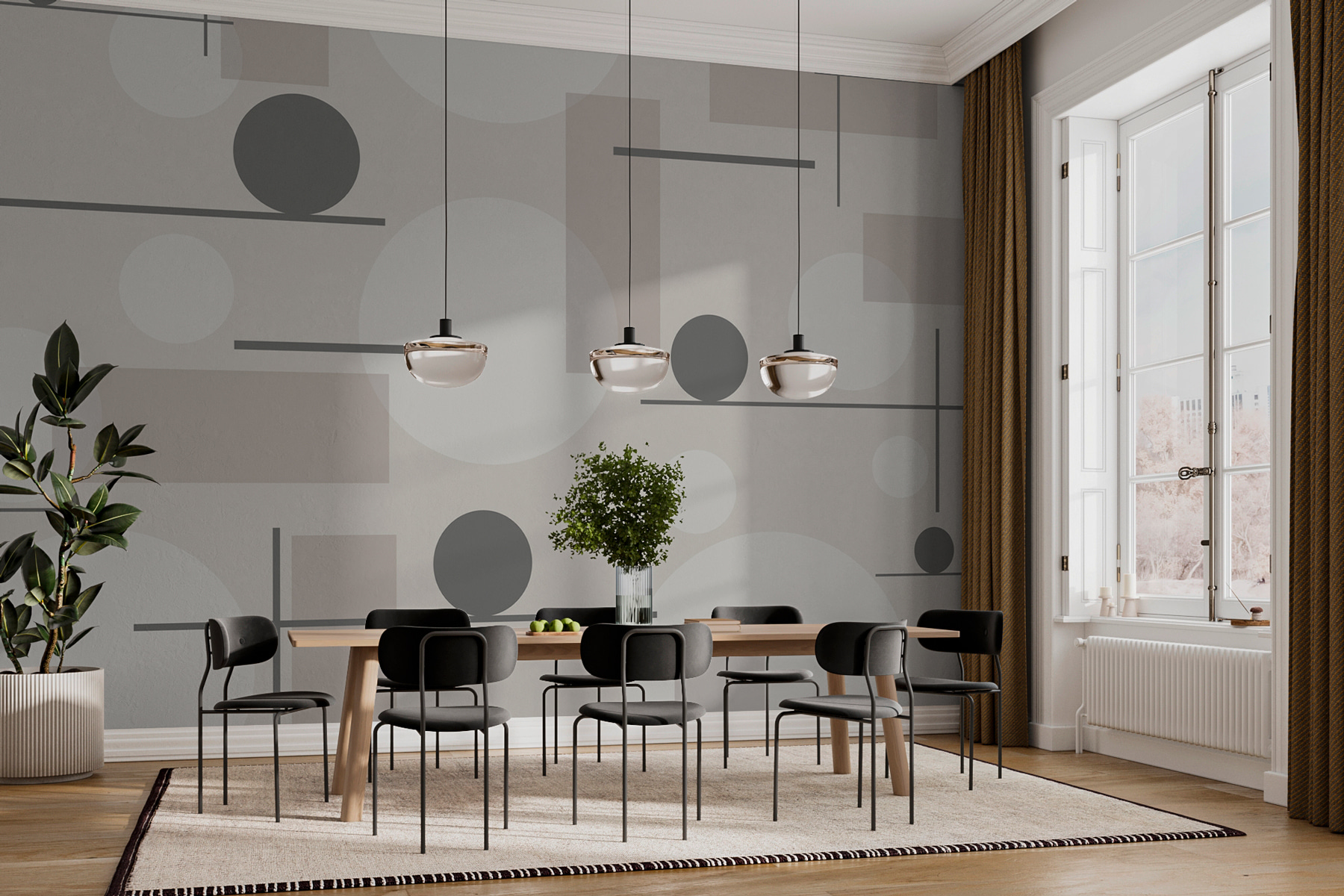 Premeňte svoj priestor pomocou tejto úžasnej nástennej maľby s elegantným sivobielym vzorom posiatym hravými kruhmi a štvorcami. Je to ako moderné umenie priamo na vašich stenách – jednoduché, a pritom fascinujúce. Predstavte si útulný kútik, kde sa schádzajú priatelia, popíjajú kávu a obdivujú, ako ľahko tento dizajn prináša nádych sofistikovanosti. Vďaka upokojujúcim odtieňom je ideálny pre pokojné útočisko alebo energizujúci pracovný priestor. Navyše môže inšpirovať k spontánnym tanečným prestávkam, keď sa dostaví nálada. Kto by povedal, že zdobenie môže byť také zábavné?