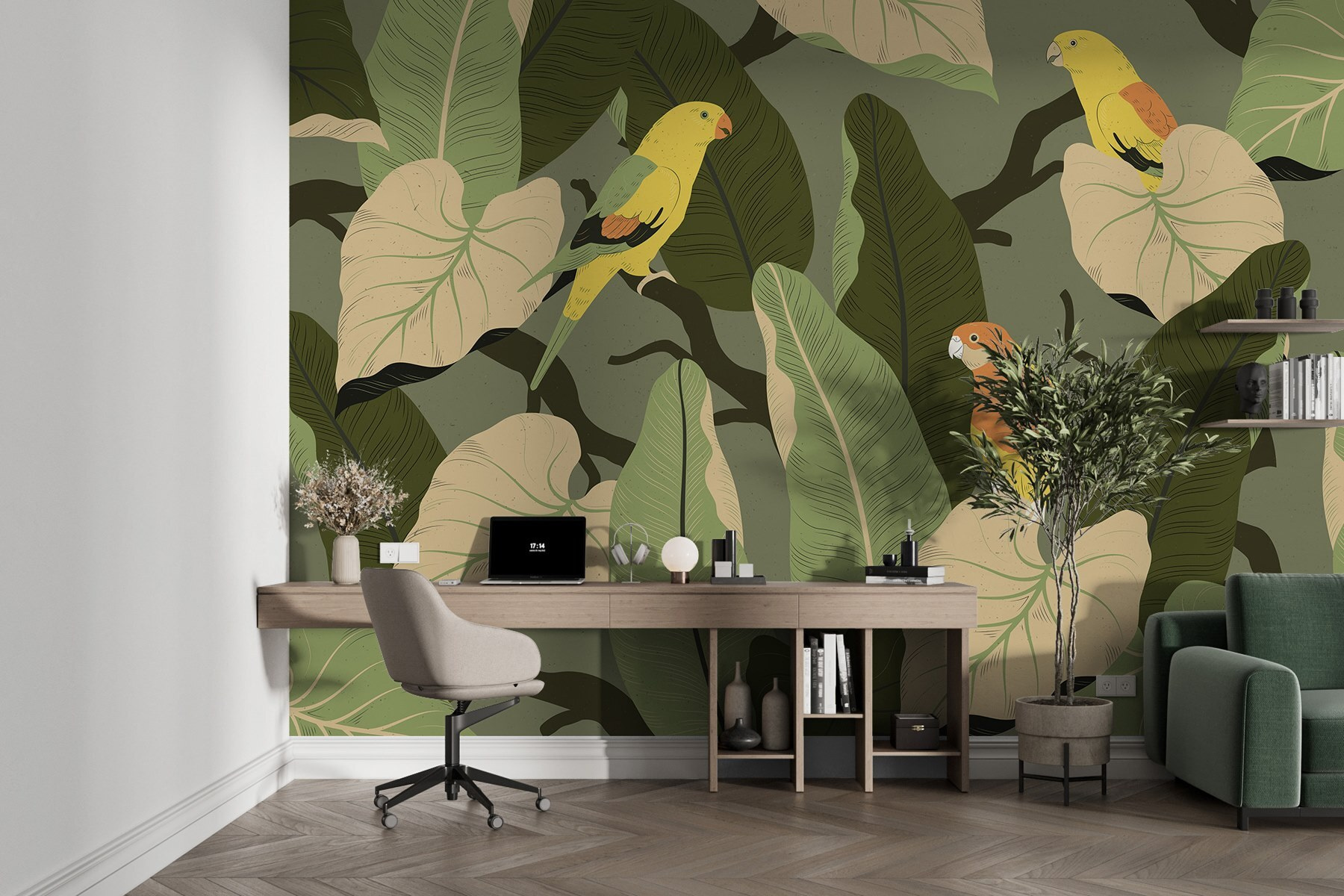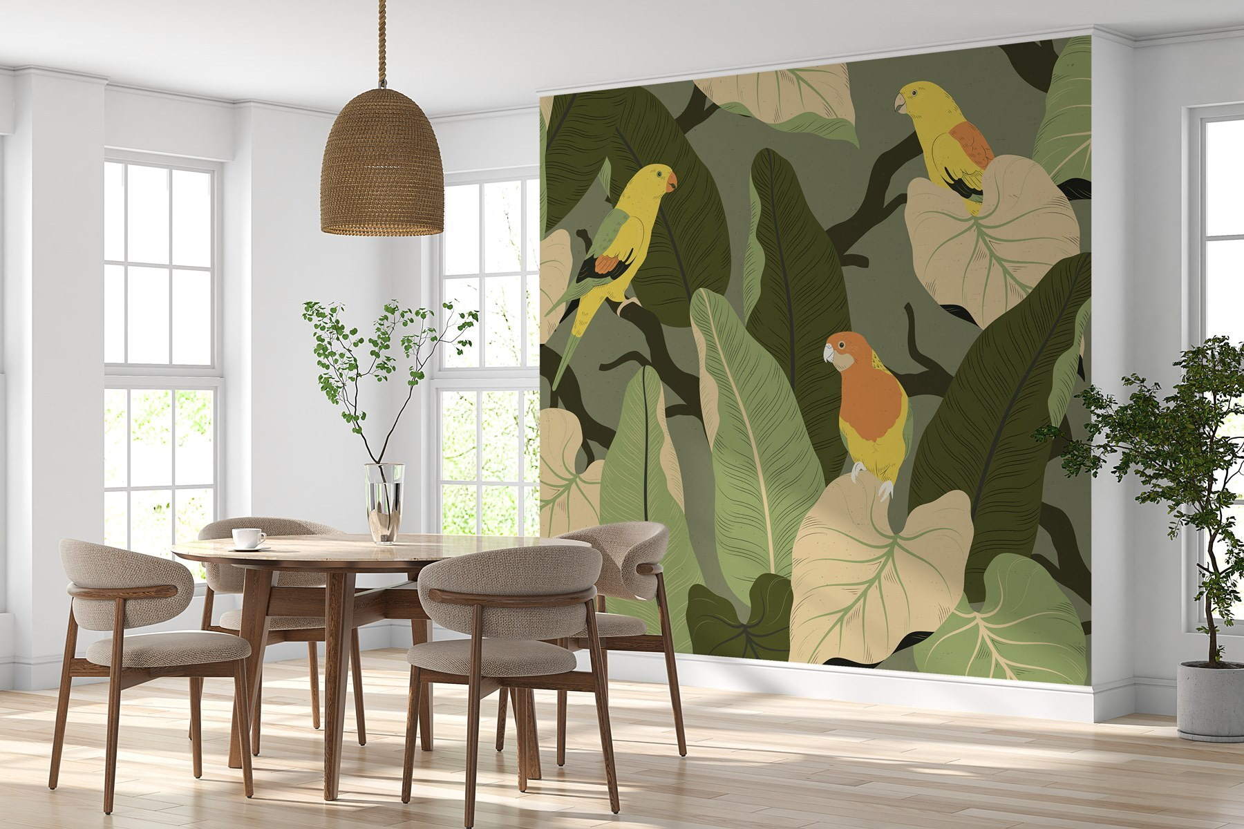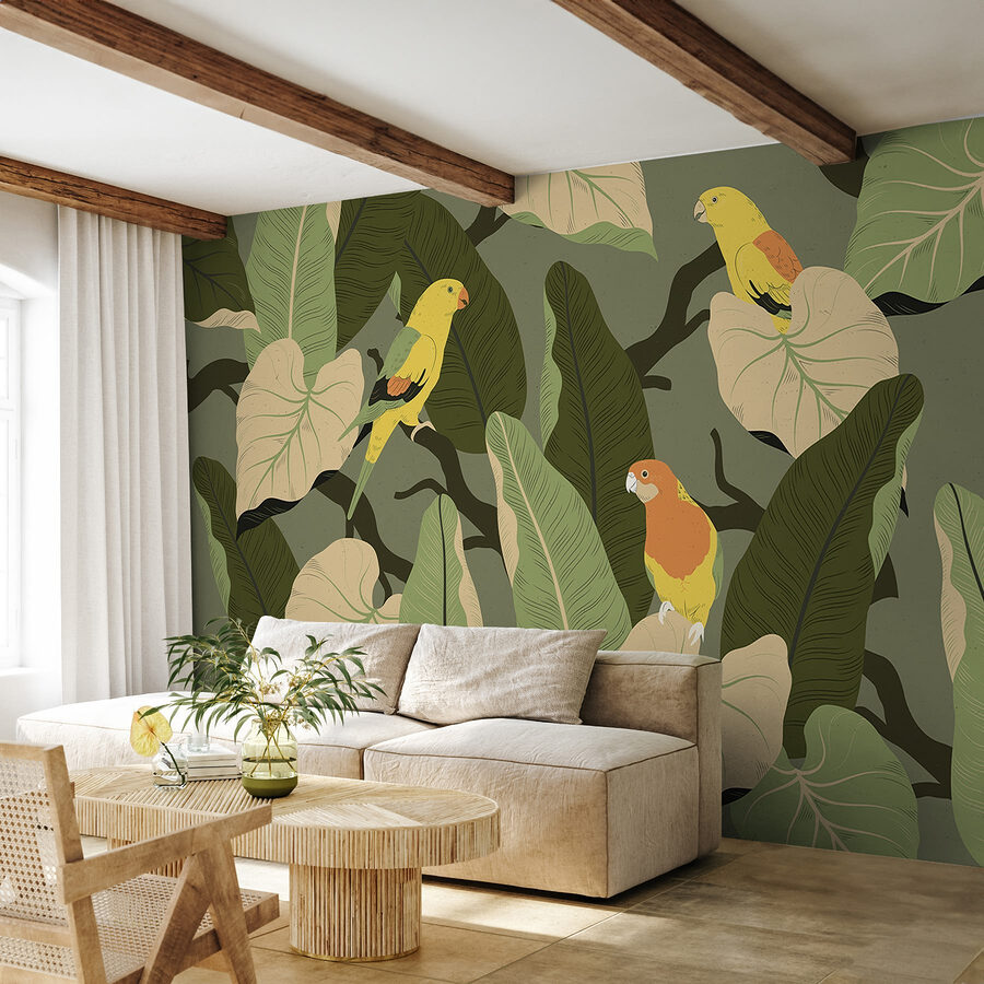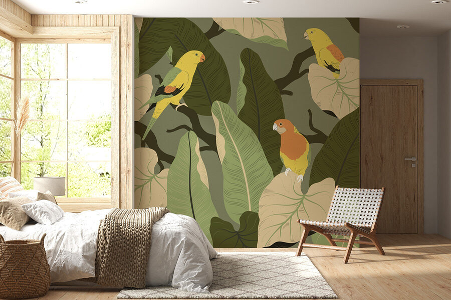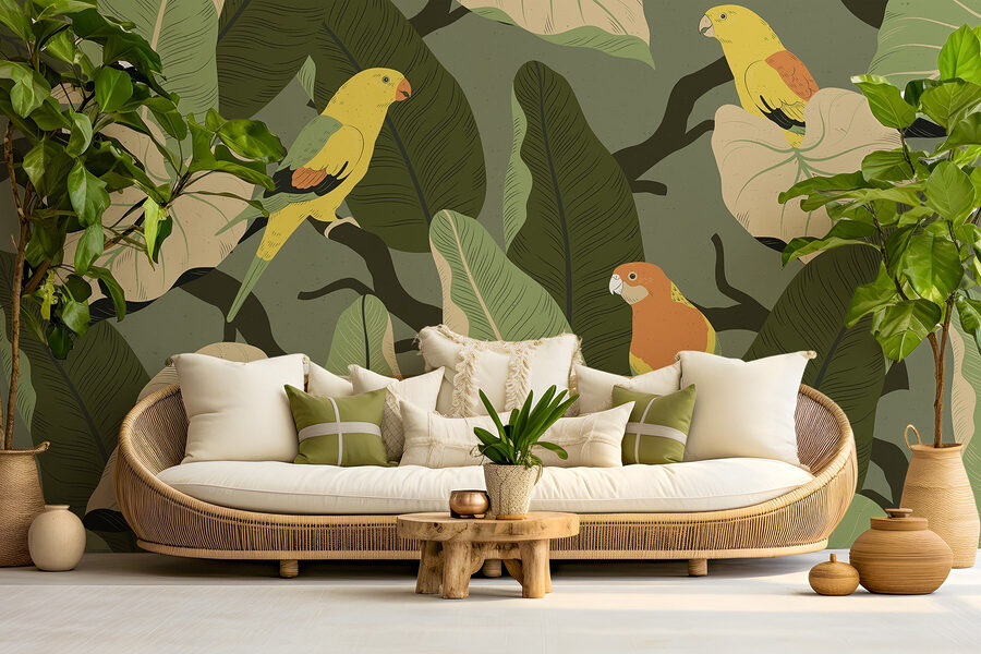 Premeňte akýkoľvek priestor na svieži raj s touto žiarivou nástennou maľbou farebných vtákov sediacich na listnatých konároch! Predstavte si, že vstúpite do miestnosti, kde tropické vibrácie prúdia ako jemný vánok. Títo veselí operení priatelia akoby spievali a vyzývali vás, aby ste sa zastavili a nasávali krásu okolo nich. Táto nástenná maľba je ideálna pre čitateľský kútik alebo živú jedáleň a prináša do interiéru kvapku prírody – nepotrebujete zelený palec! Navyše je to podnet na rozhovor, ktorý vyvoláva príbehy o cestách do exotických krajín. Kto by sa nechcel prebúdzať obklopený takýmto šarmom? Je to ako mini dovolenka priamo u vás doma!