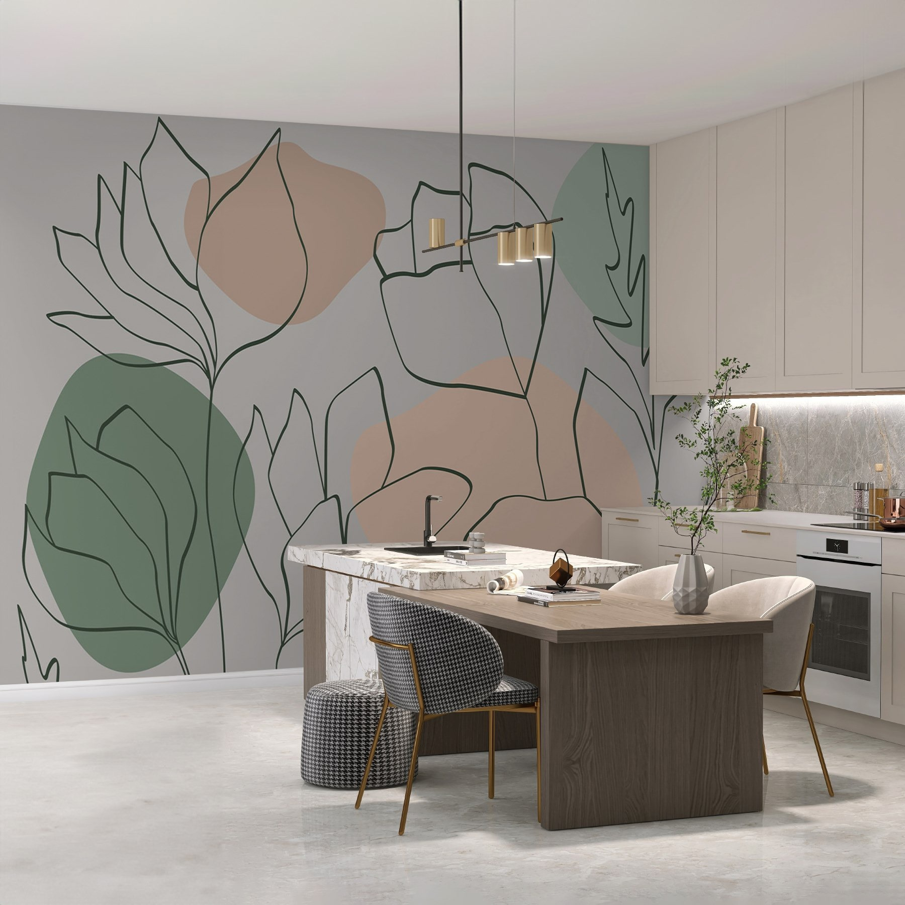 Premeňte svoj priestor pomocou tejto nádhernej nástennej maľby s nádherným tancom kvetov a listov. Predstavte si to: vstúpite a zrazu sa vám bude zdať, že miestnosť je živá a prekypuje zemitými vibráciami prírody. Jemné akvarelové tóny sa dokonale prelínajú, takže sa budete cítiť ako v pokojnej záhrade priamo u vás doma. Akoby sa matka príroda rozhodla prísť na návštevu – bez všetkej špiny! Či už je to vaša obývacia izba, spálňa, alebo dokonca tá nepríjemná chodba, táto nástenná maľba nabáda k pokoju a kreativite. Kto by nechcel popíjať kávu obklopený takouto krásou? Tak smelo do toho a nechajte svoje steny rozkvitnúť!
