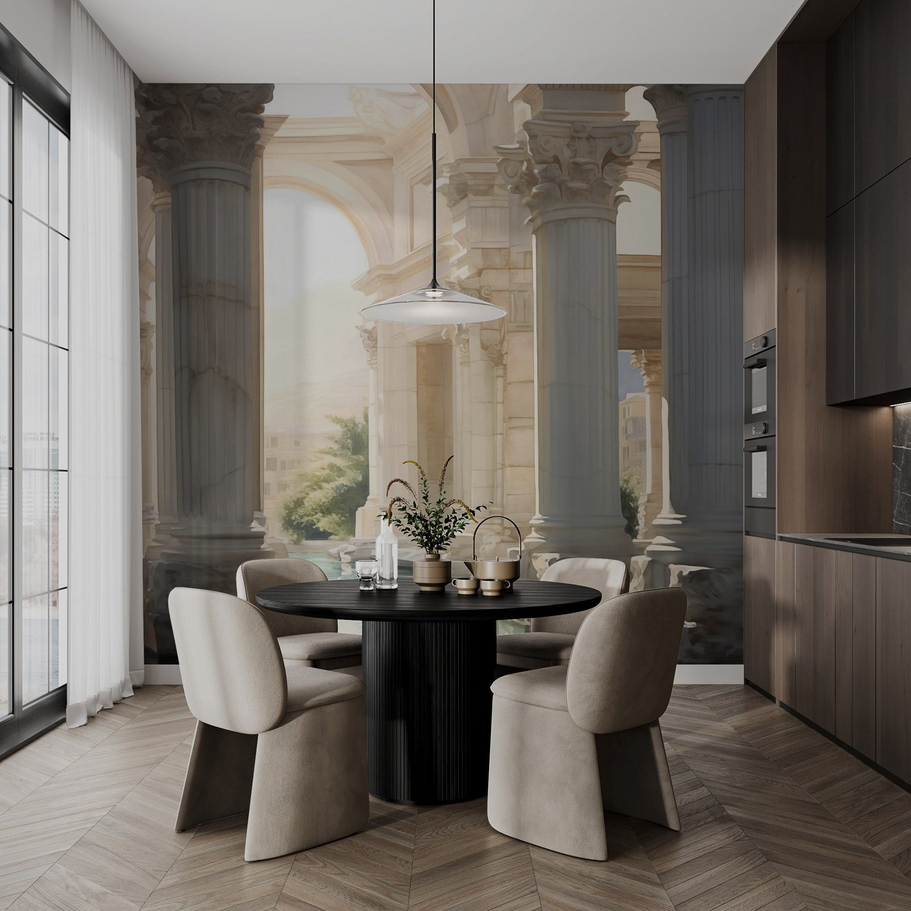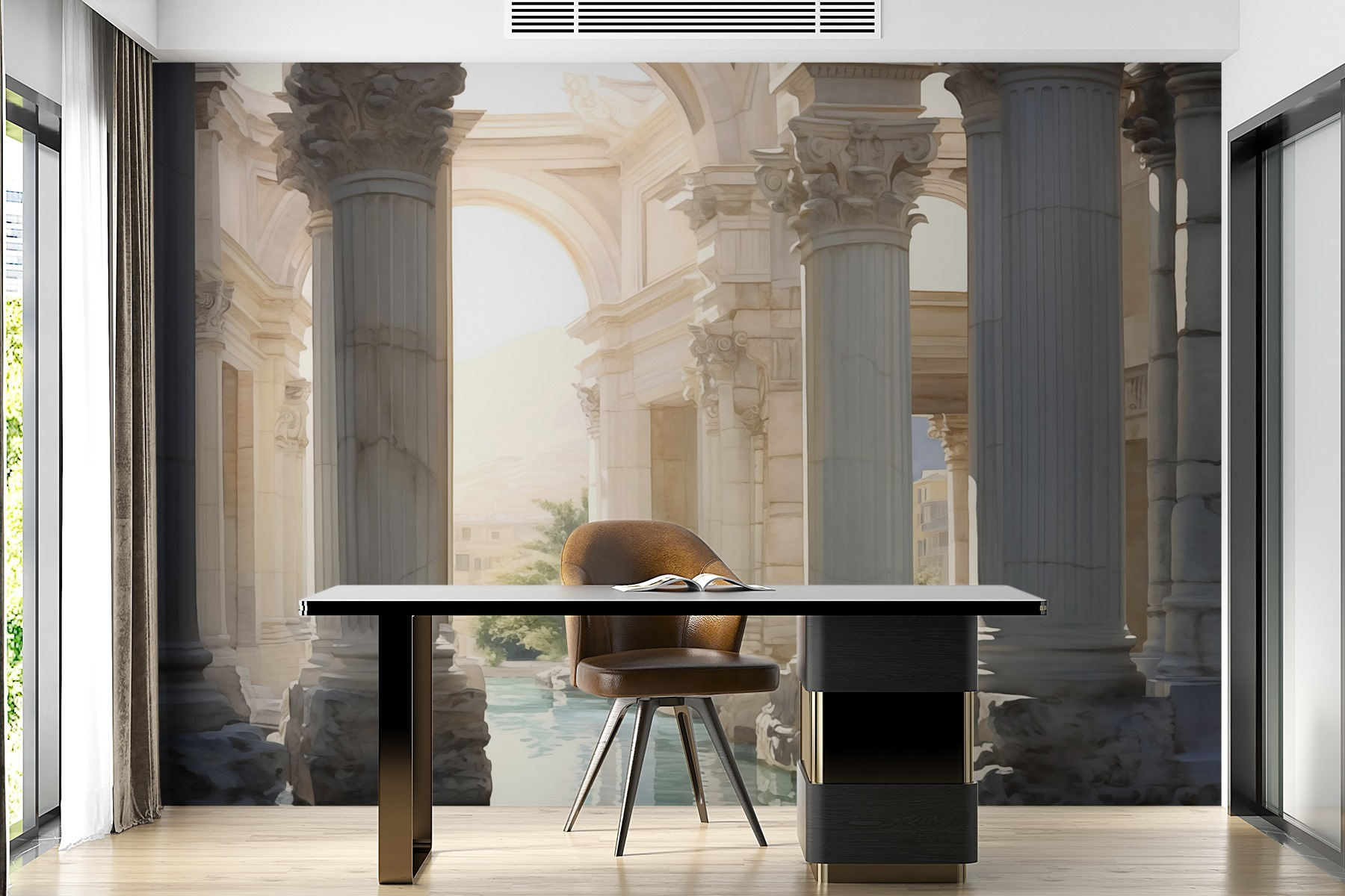 Premeňte akýkoľvek priestor na pokojné útočisko pomocou tejto úžasnej nástennej maľby s pokojnou vodnou scénou orámovanou veľkými stĺpmi. Predstavte si, že vojdete do svojej izby a máte pocit, že ste vstúpili do zasnenej oázy, kde slnečné svetlo tancuje na vode a architektonické detaily vyzývajú k zvedavosti. Tento kúsok našepkáva príbehy o dávnych zázrakoch a pokojných útočiskách, takže je ideálny do útulnej obývačky alebo upokojujúcej spálne. Je to ako mini dovolenka zakaždým, keď sa pozriete jeho smerom – kto by to nechcel? Ideálny pre milovníkov jedinečných dekorácií!