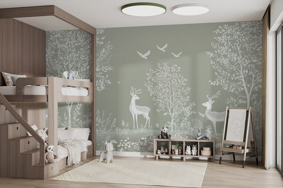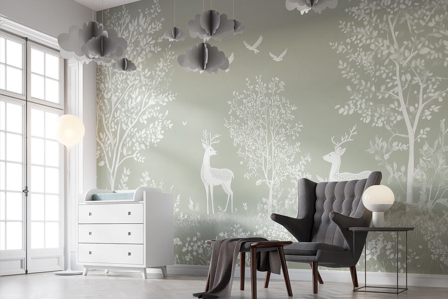 Predstavte si, že vstúpite do pokojného lesa, kde vás nežná krása prírody pozýva k zastaveniu. Táto nástenná maľba s pôvabnými bielymi jeleňmi a hravými vtákmi medzi sviežimi stromami to dokáže – premení každú miestnosť na upokojujúce útočisko. Jemné tóny vytvárajú vzdušný dojem, takže je ideálna do útulných priestorov alebo tichých kútikov na čítanie. Predstavte si, ako popíjate čaj a snívate o lesných dobrodružstvách alebo počúvate šumenie listov. Je to ako preniesť kúsok prírody do interiéru, bez komárov! Jednoduchý spôsob, ako vniesť do každodenného života trochu rozmarnosti a pokoja. Ideálne pre milovníkov prírody alebo pre každého, kto potrebuje trochu úniku.