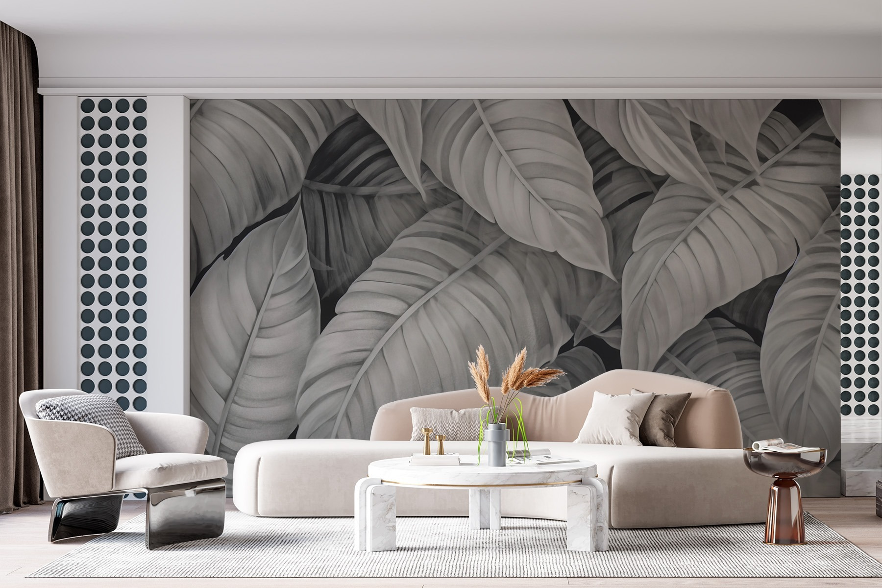Premeňte akýkoľvek priestor na pokojné útočisko s touto úžasnou nástennou maľbou “Skupina listov na hromade”. Predstavte si, že vojdete do miestnosti, kde vás obklopuje upokojujúca prítomnosť sviežich listov. Jemné sivé tóny vytvárajú zasnenú atmosféru a dodávajú dokonalý tropický pocit bez toho, aby ste potrebovali pas. Je to ako mať mini džungľu priamo na stene – samozrejme, bez chrobákov! Perfektne sa hodí do útulného čitateľského kútika alebo ako odvážne vyhlásenie v obývačke. Len si predstavte, ako sa krútite so šálkou čaju obklopení eleganciou prírody. Je to osviežujúci závan čerstvého vzduchu v interiéri!