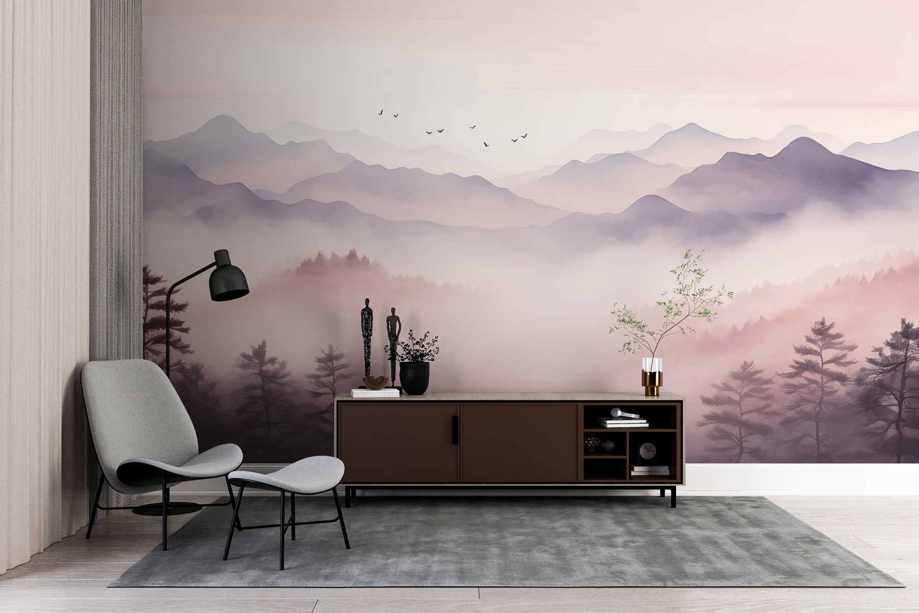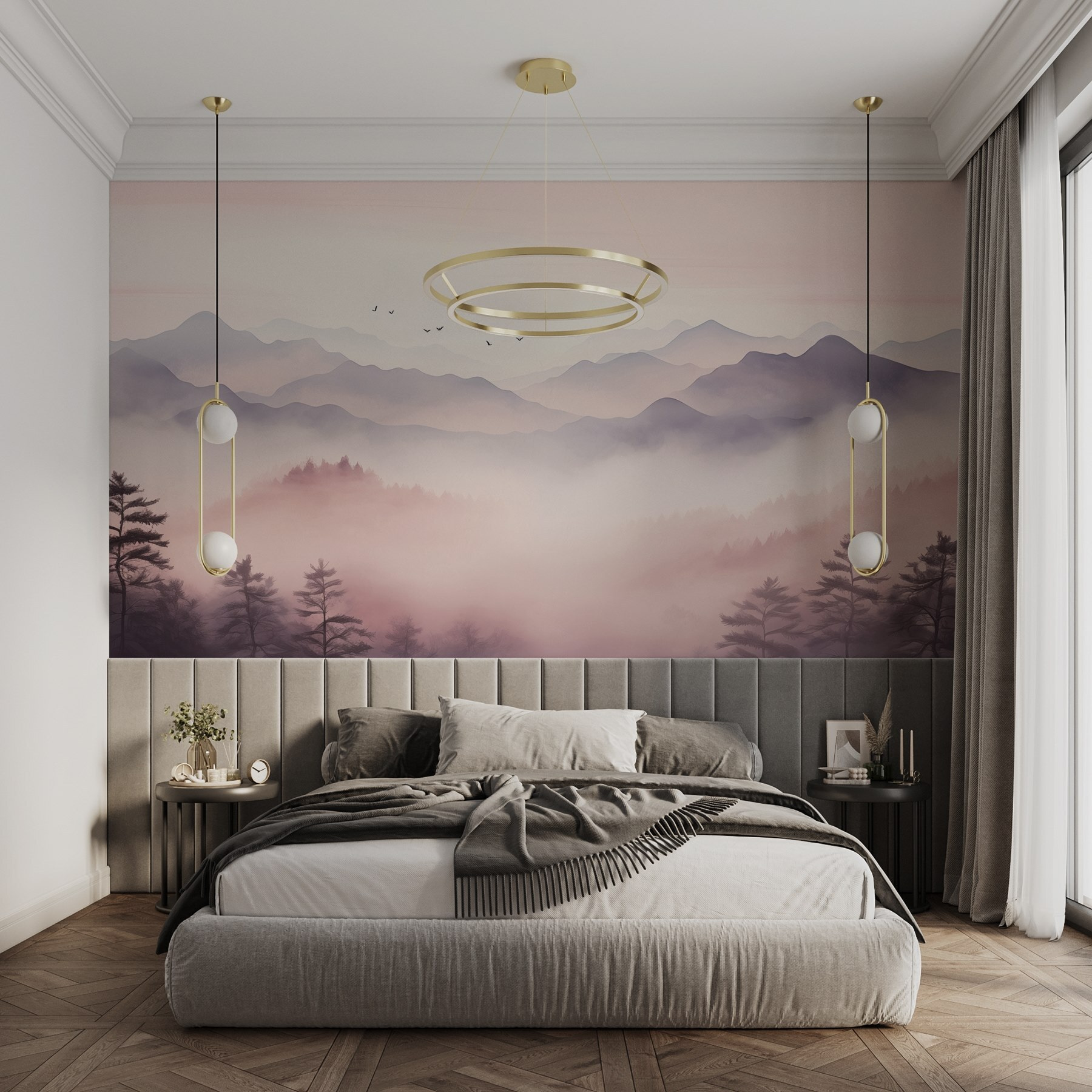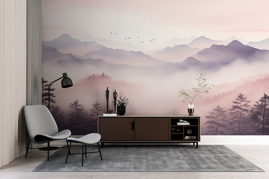 Premeňte svoj priestor pomocou nástennej maľby “Krajina so stromami a horami”. Táto úžasná nástenná maľba prináša pokojnú atmosféru vonkajšieho prostredia priamo do interiéru – myslite na čerstvý horský vzduch bez potreby turistických topánok. Jemné odtiene ružovej a sivej farby sa nádherne prelínajú a vytvárajú pokojné pozadie. Predstavte si, že popíjate kávu pri pohľade na tieto jemné svahy; každý deň sa cítite ako na útulnom úteku. Stromy stoja vysoko, akoby šepkali tajomstvá prírody. Táto nástenná maľba je ideálna pre tých, ktorí chcú mať doma nádych pokoja, je to závan čerstvého vzduchu! Navyše je to skvelý podnet na rozhovor – kto nemá rád dobré príbehy z hôr?