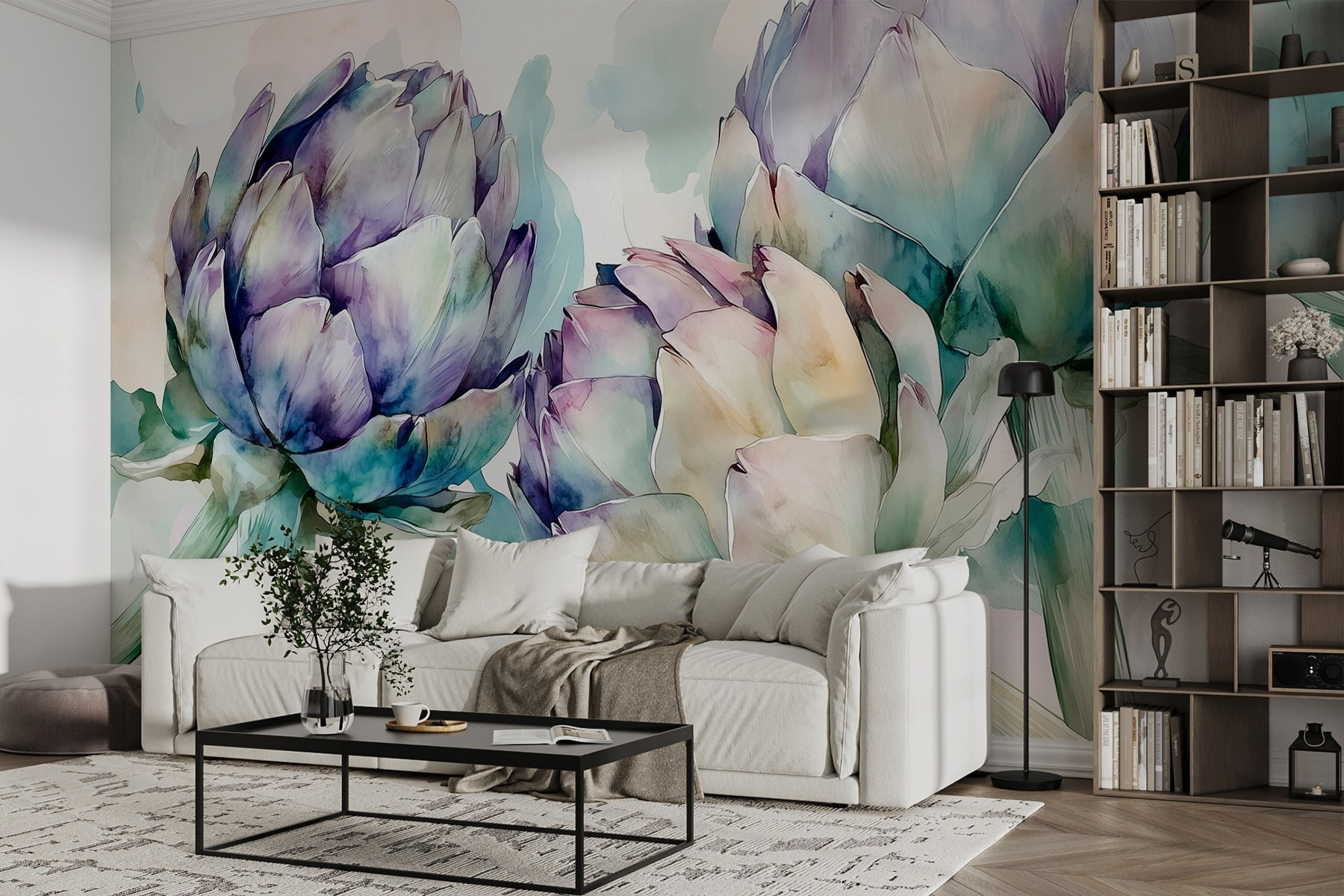 Premeňte akýkoľvek priestor pomocou tejto úžasnej nástennej maľby s jemnými artičokmi na jemnom bielom pozadí. Predstavte si, že vstúpite do miestnosti a okamžite pocítite, že vás priťahujú pokojné, akvarelové vibrácie tejto očarujúcej zeleniny. Táto nástenná maľba je ideálna pre útulnú kuchyňu alebo svetlom naplnenú jedáleň, šepká teplo a kreativitu. Je to ako pozvať si do interiéru malú záhradku, bez špiny a konví na polievanie. Priatelia budú omdlievať a možno sa aj vy budete častejšie rozprávať o receptoch na artičoky – kto by povedal, že môžu vzbudiť takú kulinársku zvedavosť? Kvapka krásy prírody, ktorá vnesie do každodenného života nádych pokoja.