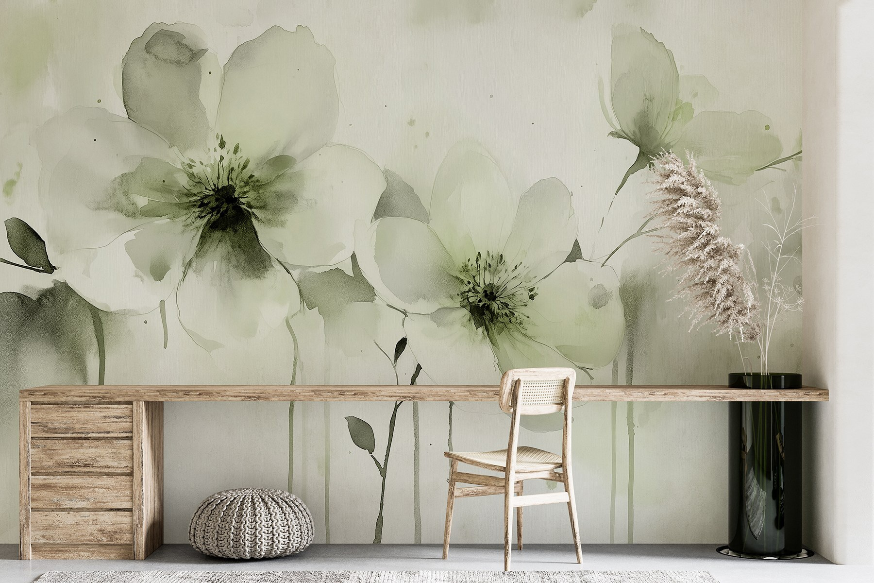 Premeňte akýkoľvek priestor na pokojnú oázu pomocou nástennej maľby “Jemné kvety v jemných odtieňoch”. Predstavte si, že sa zobudíte a po stene sa vám budú vznášať jemné okvetné lístky, ktoré šepkajú pokoj a mier. Jemné akvarelové tóny sú ako ranný vánok, osviežujúce a zároveň upokojujúce. Predstavte si, ako popíjate kávu, zatiaľ čo tieto elegantné kvety získavajú miesto v prvej rade vášho pondelkového ranného zhonu. Majú isté čaro, vďaka ktorému sa každá miestnosť bude cítiť trochu výnimočnejšie, však? Navyše sa krásne hodia k tej nepredvídateľnej lampe, o ktorej ste si mysleli, že ju nikdy nepoužijete. Je to umenie, ktoré vdýchne vášmu domovu život – nie je potrebný zelený palec!