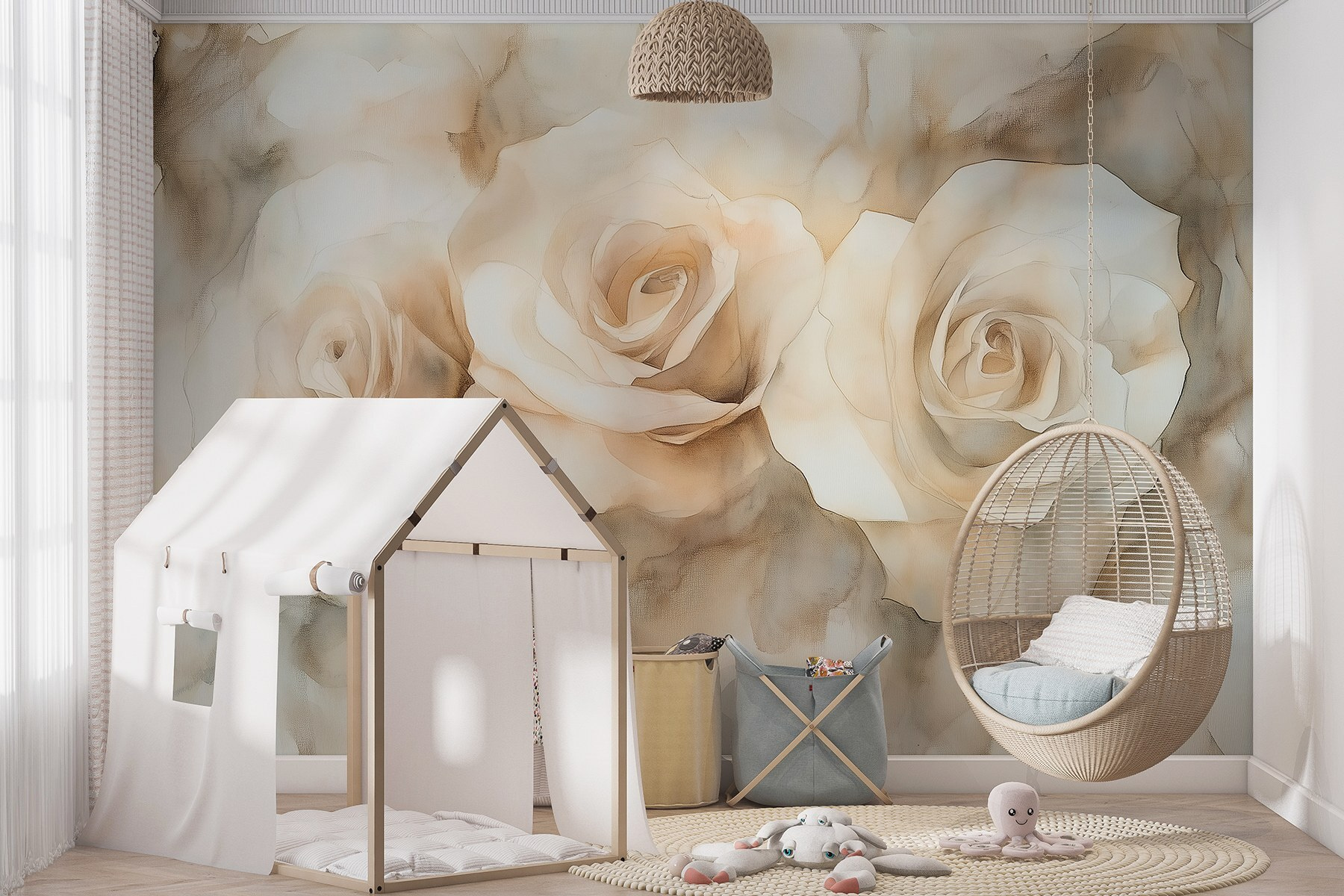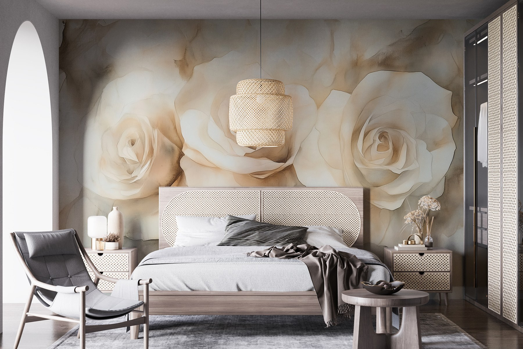 Premeňte akúkoľvek stenu na rozkvitnutý raj s fototapetou “Skupina bielych ruží”. Tento kúsok dodáva jemnú, zasnenú atmosféru, takže je ideálny pre útulný kútik, kde človek popíja kávu a pozoruje plynúci svet. Predstavte si, že vstúpite do miestnosti, kde elegantné ruže jemne šepkajú romantiku a pokoj. Ich jemné odtiene sa nádherne prelínajú, takmer akoby sa vznášali na jemnom vánku. Je to, akoby ste mali kúzlo prírody priamo vo svojom obytnom priestore, ktoré pozýva k pokoju a posype ho rozmarmi. Kto by nechcel mať dotyk kvetinového kúzla tam, kde oddychuje?