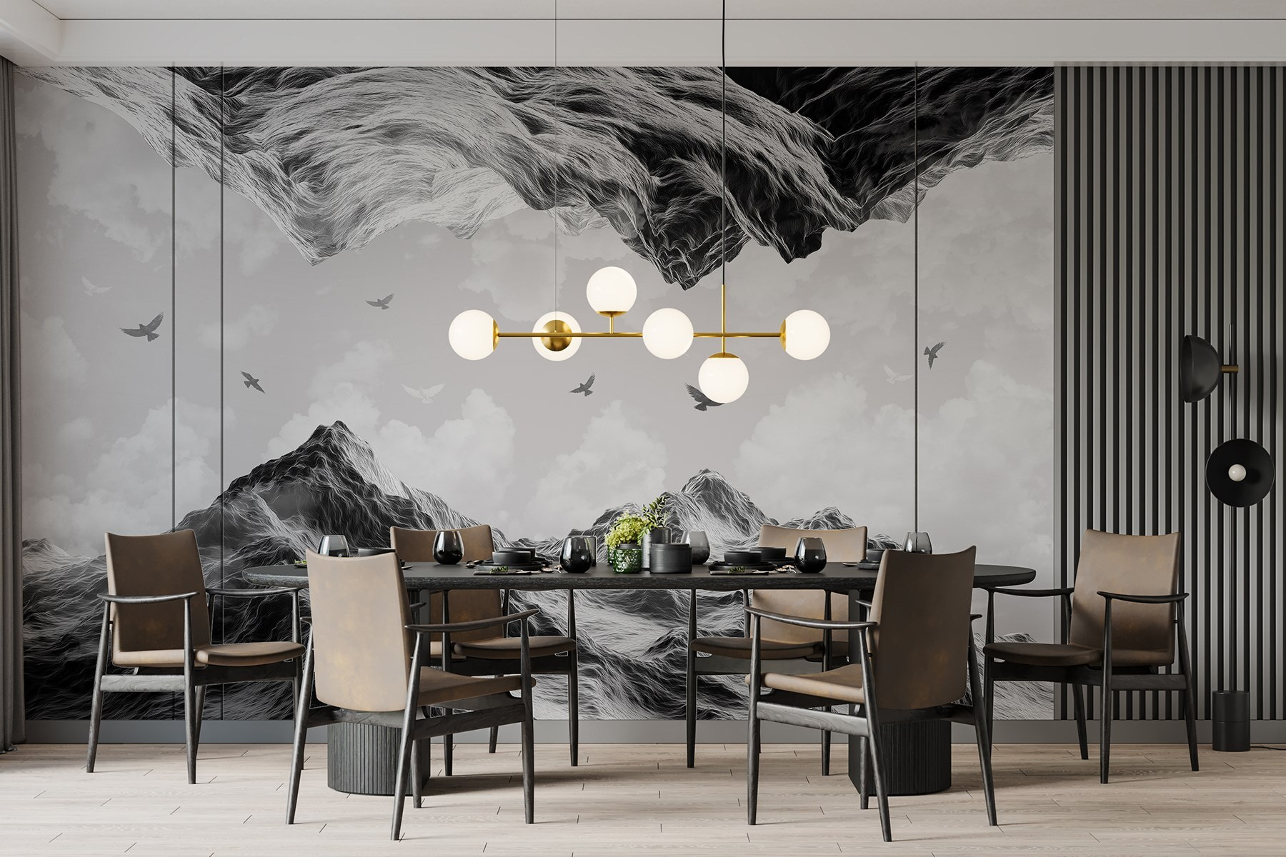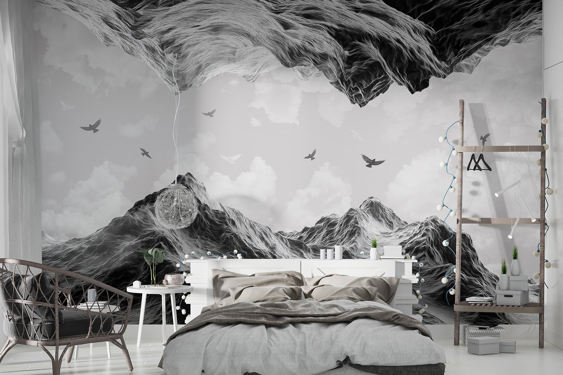 Predstavte si, ako sa váš priestor premení na útulné útočisko s touto nástennou maľbou vtákov vznášajúcich sa nad majestátnymi horami. Je to ako pozvať prírodu priamo k vám domov, bez komárov. Jemné akvarelové tóny vytvárajú upokojujúcu atmosféru – ideálnu do obývačky alebo tichého čitateľského kútika. Keď slnko vrhá svoje svetlo, vtáky akoby tancovali vo vzduchu, čo im dodáva nádych rozmarnosti. Predstavte si, ako sa chúlite s teplým nápojom a cítite, ako vás obklopuje pokoj. Je to viac než len dekorácia; je to kúsok veľkej prírody bez toho, aby ste museli chodiť na túry. Kto by to nechcel, však?