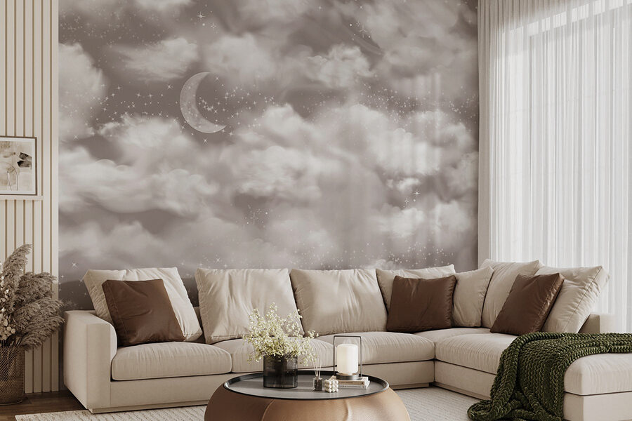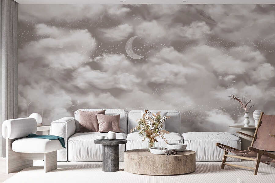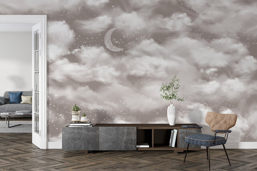 Premeňte svoj priestor na zasnený únik s nástennou maľbou “Mesiac na oblohe”. Predstavte si, že sa každý deň prebúdzate pod baldachýnom jemných oblakov a trblietajúcich sa hviezd – znie to blažene, však? Táto nástenná maľba prináša do interiéru kúsok nočnej oblohy a dokonale vyvažuje útulnú atmosféru s nádychom rozmarnosti. Či už sa nachádza v spálni, alebo v kreatívnom kútiku, na stenách rozprašuje kúzlo.