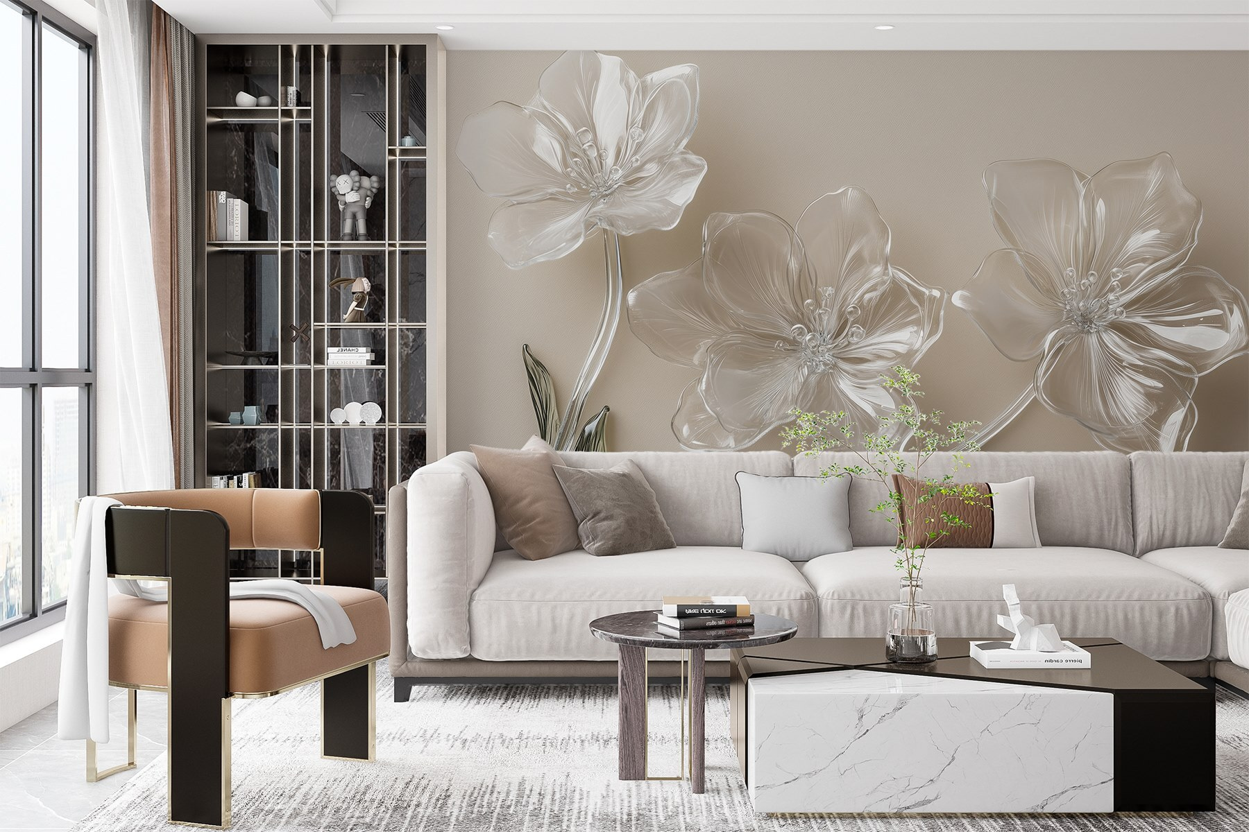 Premeňte akýkoľvek priestor pomocou očarujúcej krásy nástennej maľby “Sklenené kvety na bielom povrchu”. Tieto krásne kvety sa akoby vznášali na vašich stenách a prinášajú do interiéru nádych prírody bez otravného peľu. Predstavte si, že popíjate rannú kávu obklopení týmito jemnými, elegantnými okvetnými lístkami – je to ako mať záhradu, ktorá kvitne po celý rok! Táto nástenná maľba, ktorá je ideálna na oživenie obývacej izby alebo dodanie osobitého vkusu útulnému kútiku, vyzýva k teplu a kreativite. Len si predstavte, ako vaši priatelia pochvália váš štýl, keď uvidia tento úžasný kúsok!