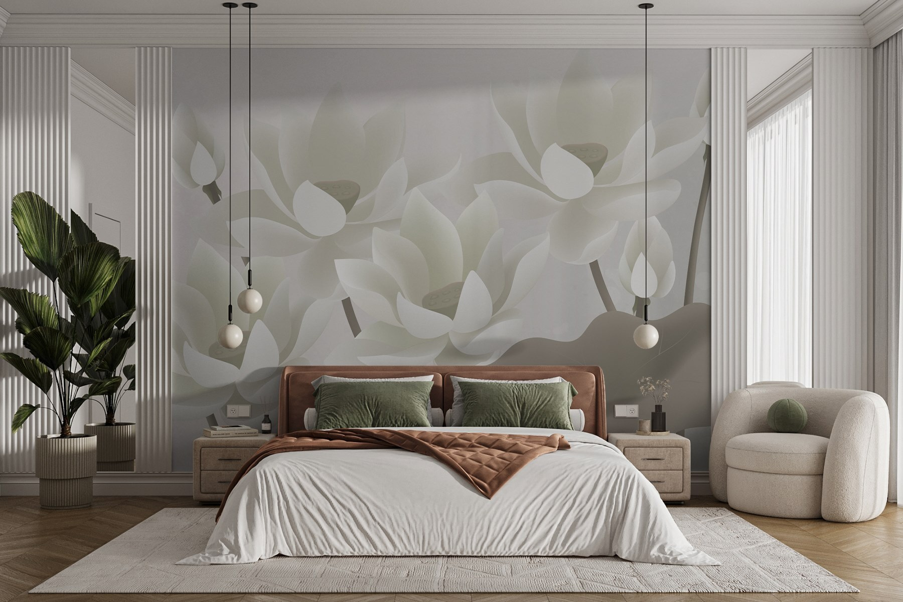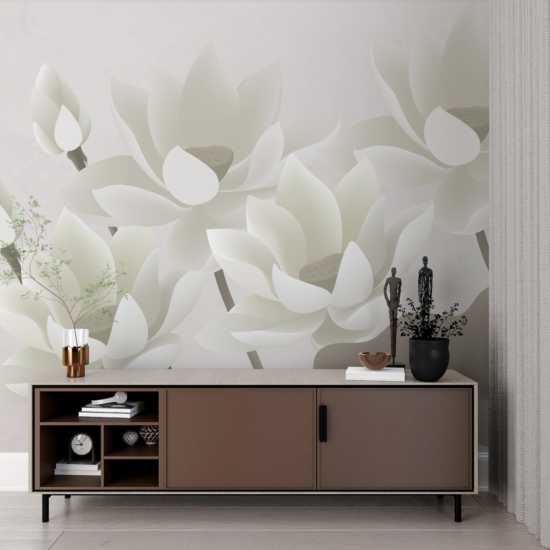 Premeňte svoj priestor pomocou tejto úžasnej nástennej maľby so zasnenou skupinou bielych kvetov. Predstavte si to: jemné okvetné lístky sa tiahnu ako nežné objatie prírody a dodávajú pokojnú atmosféru každej miestnosti. Je ideálna na stenu, ktorá si priam žiada pozornosť (poznáte ju), pretože je výrazná bez toho, aby kričala. Predstavte si, že pri pohľade na tieto kvety popíjate čaj a s každým pohľadom sa cítite trochu viac zenovo. Či už ide o útulný kútik alebo pokojnú spálňu, táto fototapeta šepká eleganciu. Ideálna pre milovníkov kvetov, ktorí chcú mať v interiéri kúsok vonkajšieho prostredia. Možno sa pri nej dokonca pristihnete pri úsmeve – áno, je taká očarujúca!