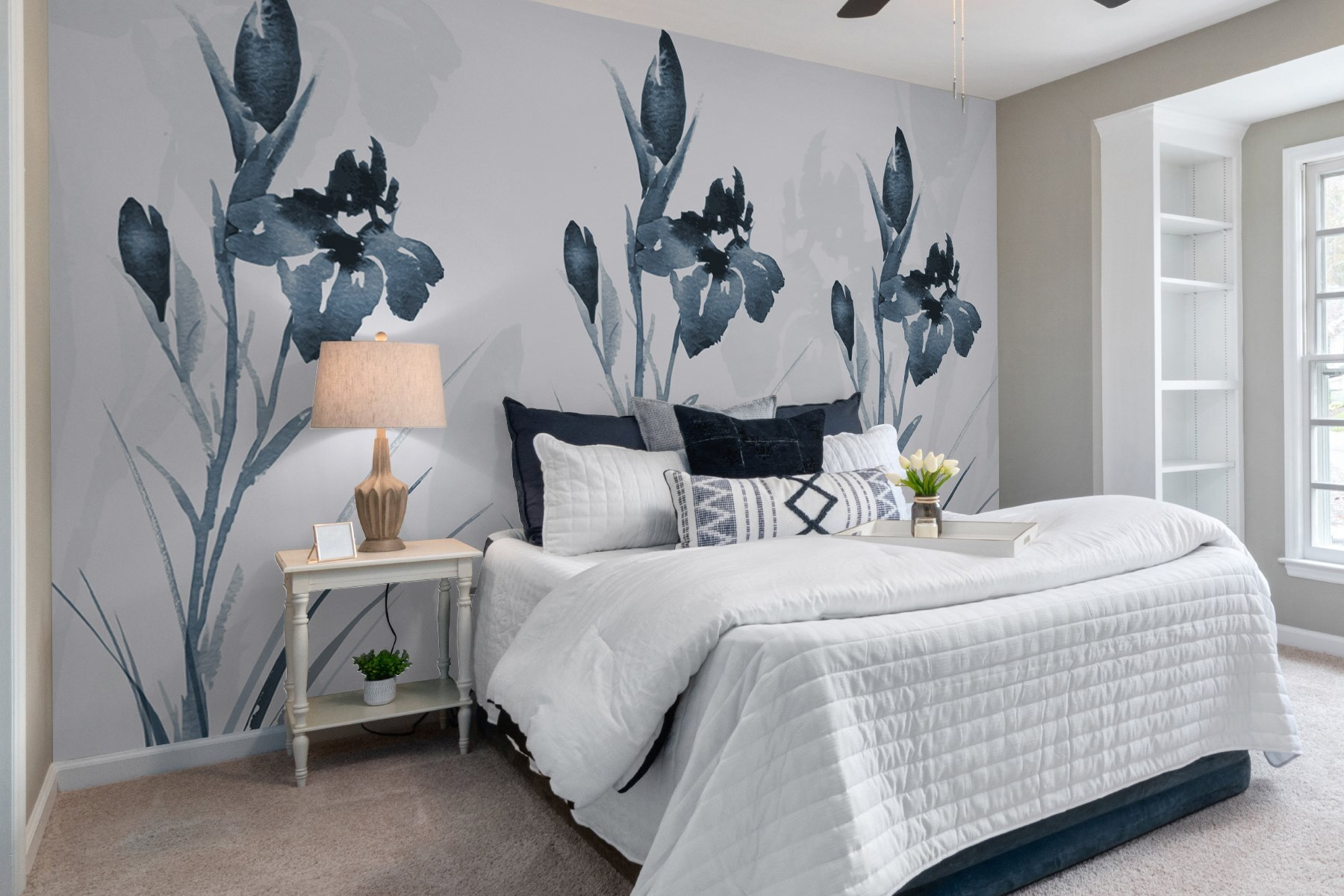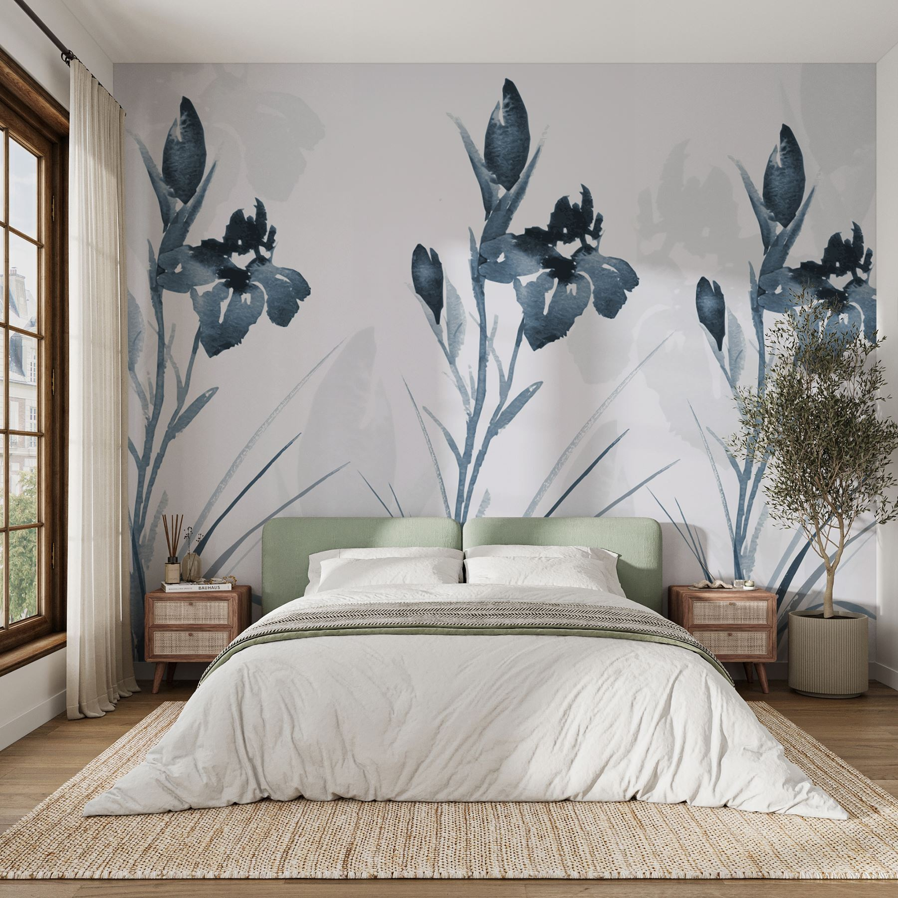 Premeňte nudnú stenu na pokojné útočisko pomocou tejto úžasnej nástennej maľby s elegantným kvetinovým vzorom v týchto zasnených chladných tónoch. Predstavte si, že pri každom vstupe do miestnosti vstúpite do bezstarostnej záhrady. Jemné ťahy štetcom a mäkké odtiene dodajú nádych pokoja a premenia každý priestor na zenové útočisko. Ideálny pre útulný čitateľský kútik alebo elegantnú jedáleň, šepká sofistikovanosť bez kriku. Je to ako mať v interiéri kúsok prírody – bez otravného hmyzu! Nech je táto nástenná maľba vašou každodennou pripomienkou spomalenia a ocenenia krásy okolo nás.