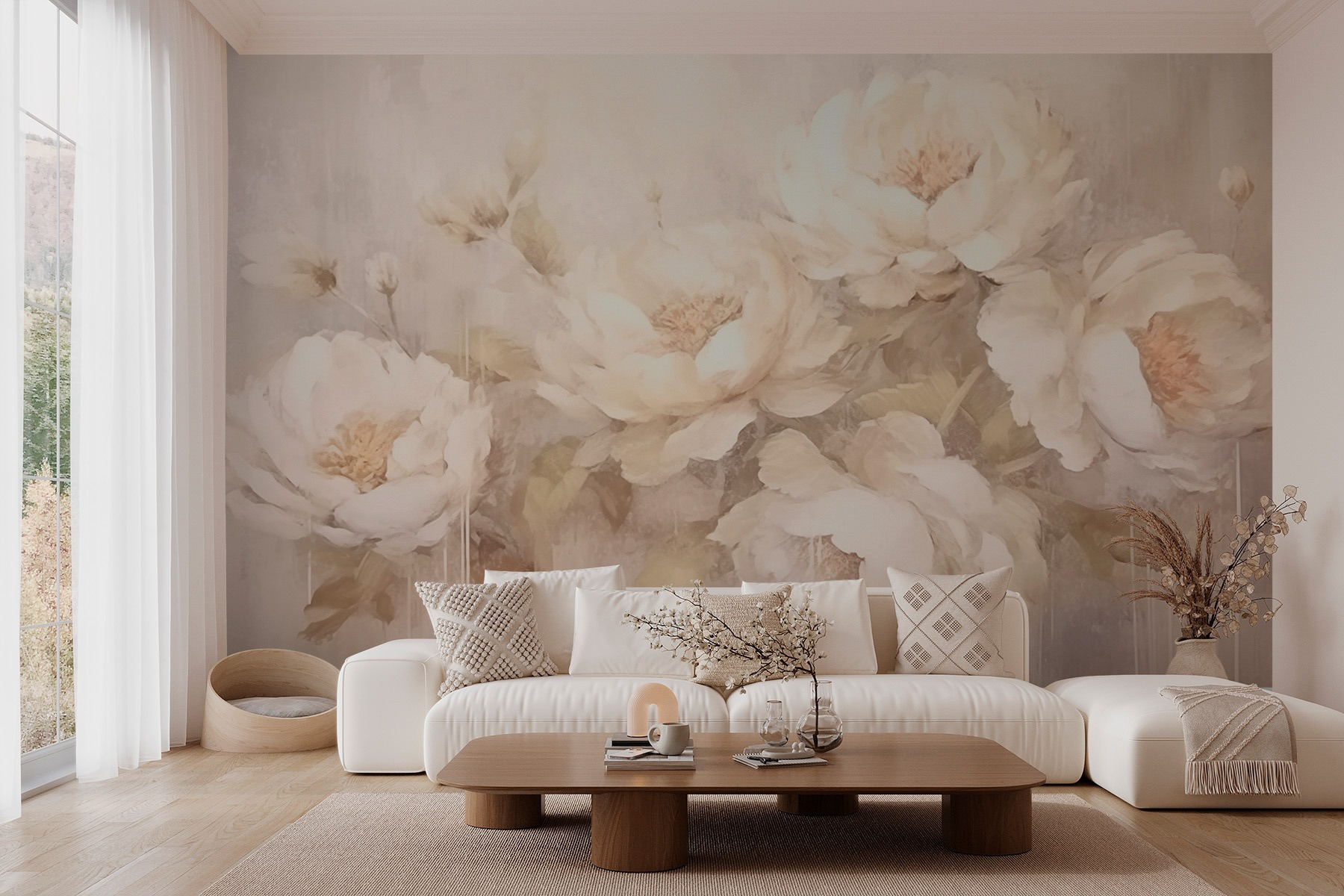 Premeňte každú miestnosť pomocou tejto nádhernej nástennej maľby s bielymi kvetmi. Predstavte si to: útulný priestor, kde tieto jemné, rozkvitnuté pivonky akoby tancovali na stene a prinášali do vášho domova závan čerstvého vzduchu. Nie sú to len kvety, sú to nežné objatia pre oči. Predstavte si, že popíjate čaj a pritom sa pozeráte na jemné ťahy štetca, cítite sa pokojne a inšpiratívne zároveň. Akoby vaše steny mali tajnú záhradu plnú pokoja a šarmu. Táto nástenná maľba je ideálna pre tých, ktorí túžia po dotyku prírody v interiéri, je ako pozvanie jari do vášho každodenného života.