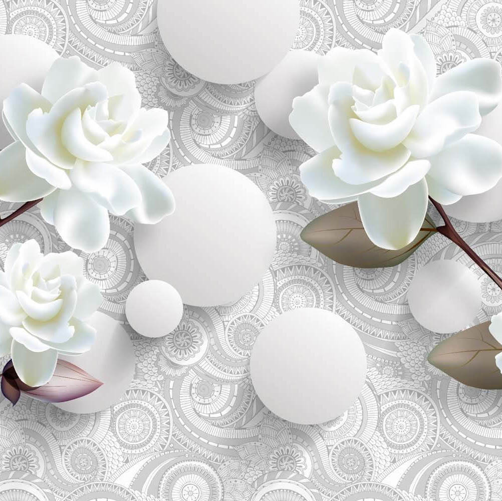 Fototapety Biele kvety a kruhy na bielom pozadí
