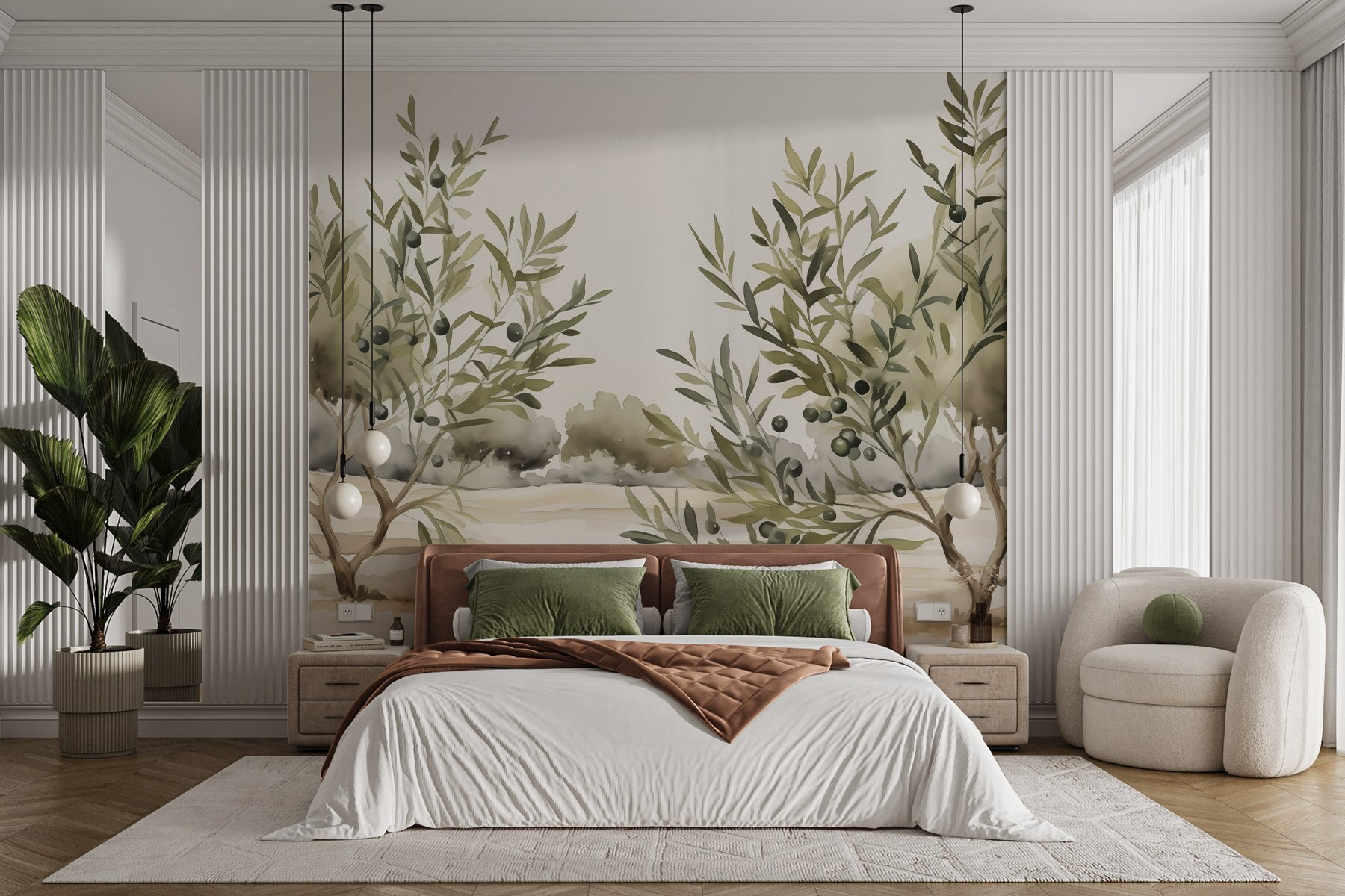 Premeňte akúkoľvek miestnosť na pokojné útočisko pomocou tejto úžasnej nástennej maľby stromov zdobených černicami. Predstavte si, že vstúpite do útulného zákutia a jemné odtiene zelenej a zemitých tónov vás obklopia ako teplé objatie. Je to ako mať pokoj prírody priamo vo svojom obytnom priestore, ktorý vám našepkáva príbehy o pokojných prechádzkach sviežimi ovocnými sadmi. Predstavte si svetlo prenikajúce cez listy, ktoré vrhá hravé tiene – a kto by sa necítil trochu uvoľnenejšie? Navyše je to príjemný začiatok konverzácie! Ideálny pre tých, ktorí oceňujú jedinečný dekor, ktorý rozpráva príbeh, bez toho, aby potrebovali vzdelanie v oblasti prírody. Je to len krásna pripomienka toho, že niekedy stačí trochu zelene, aby sa vám rozjasnil deň.